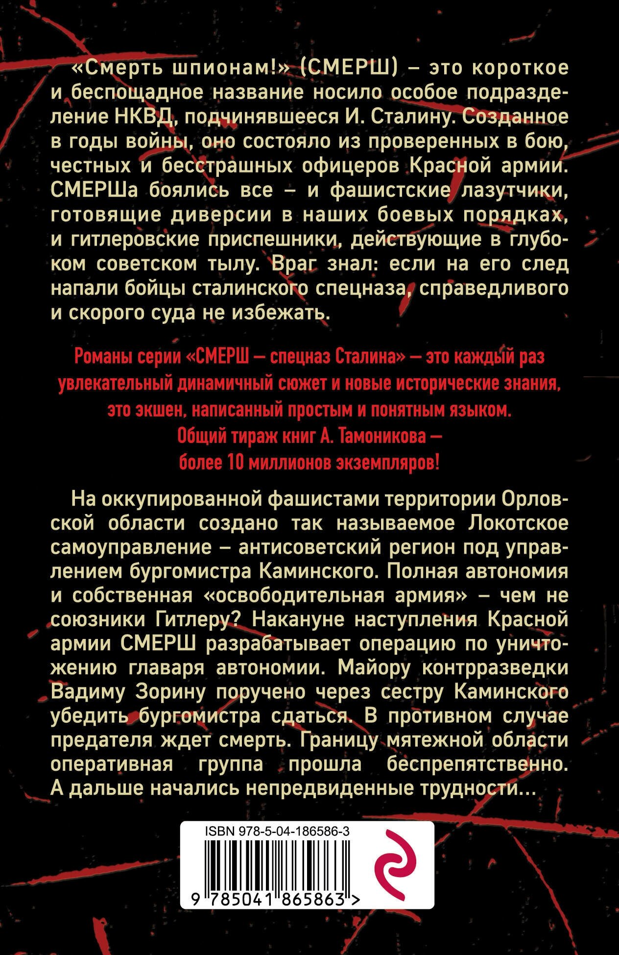 «Смерть шпионам!» (СМЕРШ) — это короткое и беспощадное название носило особое подразделение НКВД, подчинявшееся И. Сталину. Созданное в годы войны, оно состояло из проверенных в бою, честных и бесстрашных офицеров Красной Армии. СМЕРШа боялись все — и фашистские лазутчики, готовящие диверсии в наших боевых порядках, и гитлеровские приспешники, действующие в глубоком советском тылу. Враг знал: если на его след напали бойцы сталинского спецназа, справедливого и скорого суда не избежать.