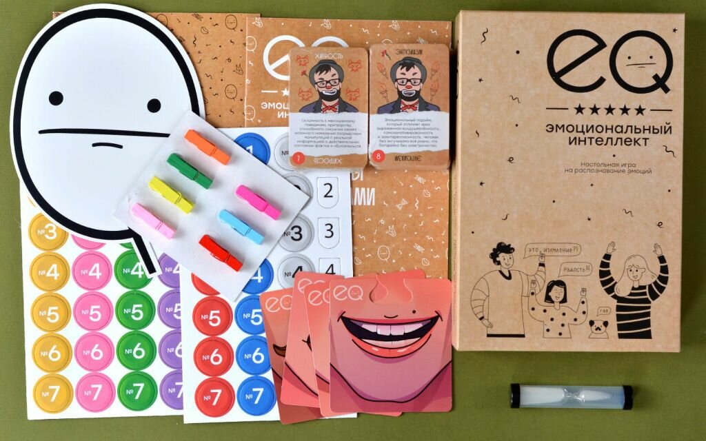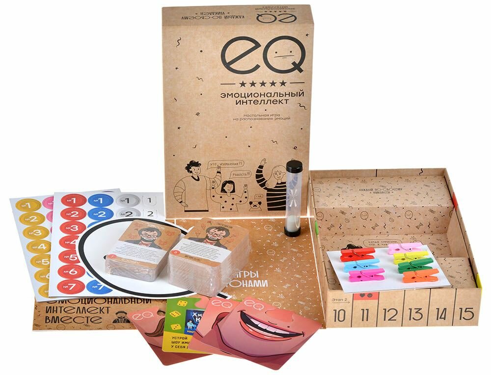 Каждый из нас с самого своего рождения начинает испытывать разнообразные эмоции. И чем старше мы становимся, тем более разнообразным становится их спектр. Но вот быстро распознавать и понимать эмоции других людей для нас не всегда возможно. А как насчёт того, чтобы научиться не только угадывать эмоции окружающих, но и управлять своими эмоциями, став настоящим мастером импровизации и нестандартного общения? Именно такими способностями вам поможет овладеть увлекательная настольная игра "Эмоциональный интеллект".Для игры вам понадобится всего две вещи. Во-первых, соберите весёлую и активную компанию друзей или домочадцев. Во-вторых, начните произносить известные фразы, украсив их определёнными эмоциями, и постарайтесь угадать, какие чувства и переживания каждый из игроков вложил в своё изречение.Эмоции изображены на 135 картах, и игроки угадывают их с помощью голосования. В простом и занимательном процессе игры вы не только прокачаете свой эмоциональный интеллект, но и научитесь слушать и слышать других людей, а, возможно, даже получите способность "видеть их насквозь".В комплекте: 135 карт эмоций, 30 карт-фраз, 4 маски, Буклет эмоций, 49 жетонов, 7 фишек-прищепок, Песочные часы, 7 нумераторов.