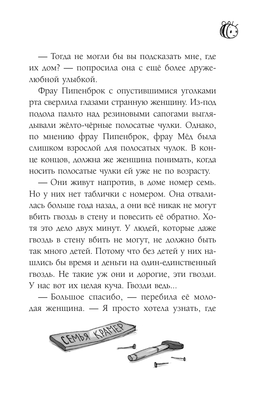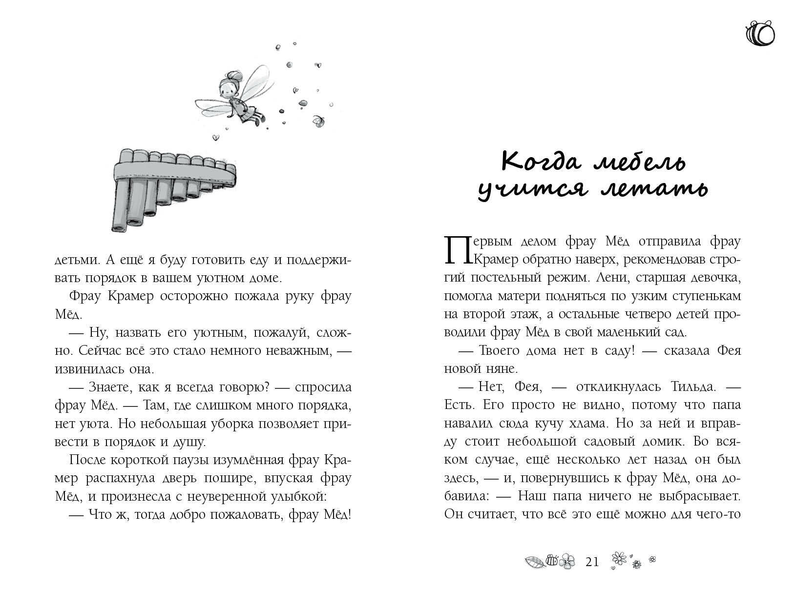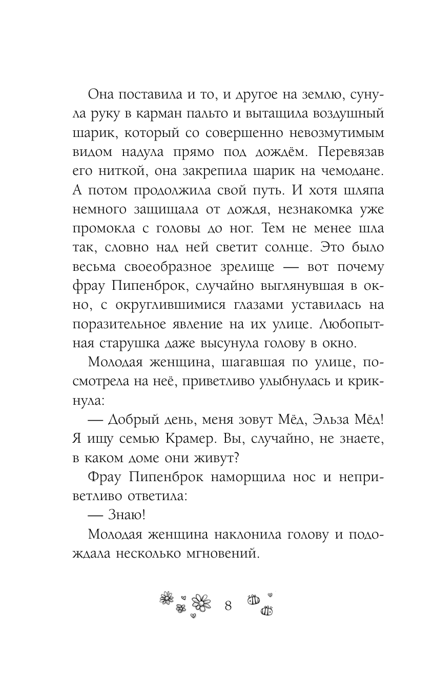 Что делает обычный день счастливым или грустным? Фрау Мёд уверена - это мы сами! Когда она появляется на пороге домика Крамеров, дела в этой большой семье сразу идут на лад. Ведь фрау Мёд не только няня, но и волшебница. Она может разобрать гору хлама, отправив его в полёт на воздушных шариках. Сшить каждому ребёнку красивую (и модную) одежду из старой и никому не нужной. Открыть кафе, которое за один день станет любимым у всей улицы… Творить маленькие чудеса совсем не сложно. Фрау Мёд готова раскрыть их секрет!