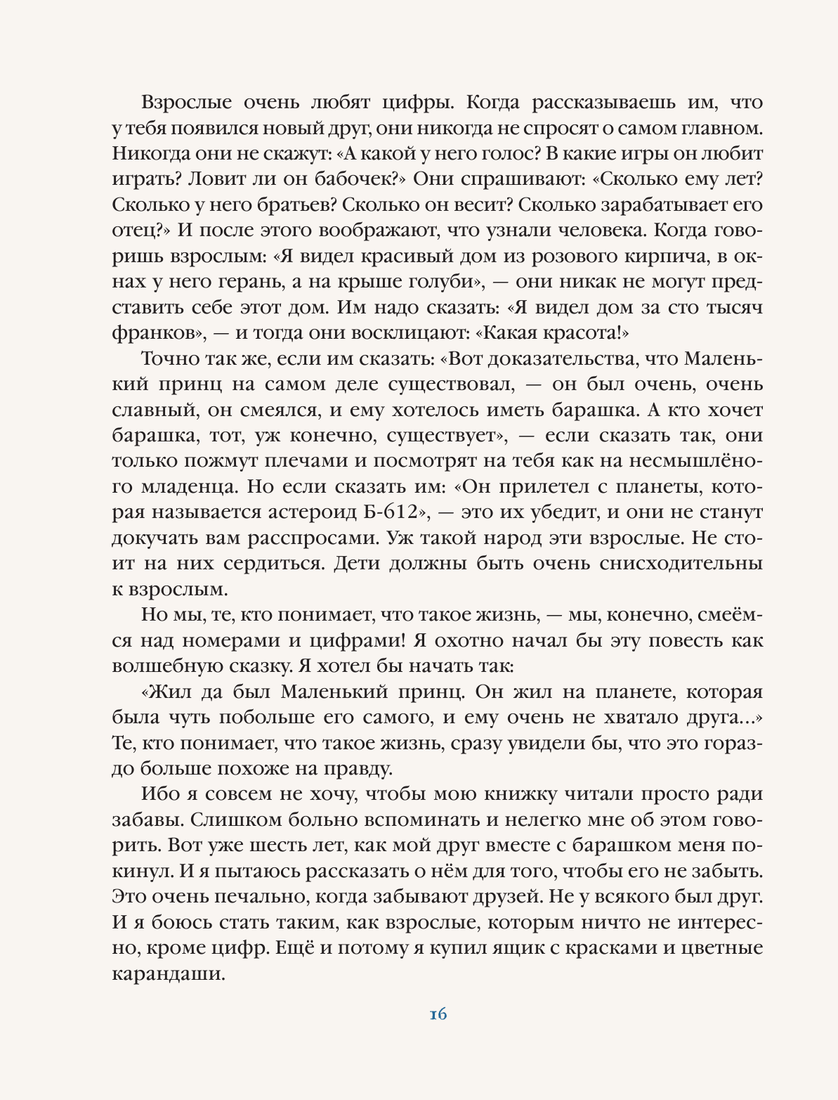 • Книга иллюстрирована рисунками известного и заслуженного художника Ники Гольц, которая одной из первых в мире создала свои собственные иллюстрации к сказке Антуана де Сент-Экзюпери.