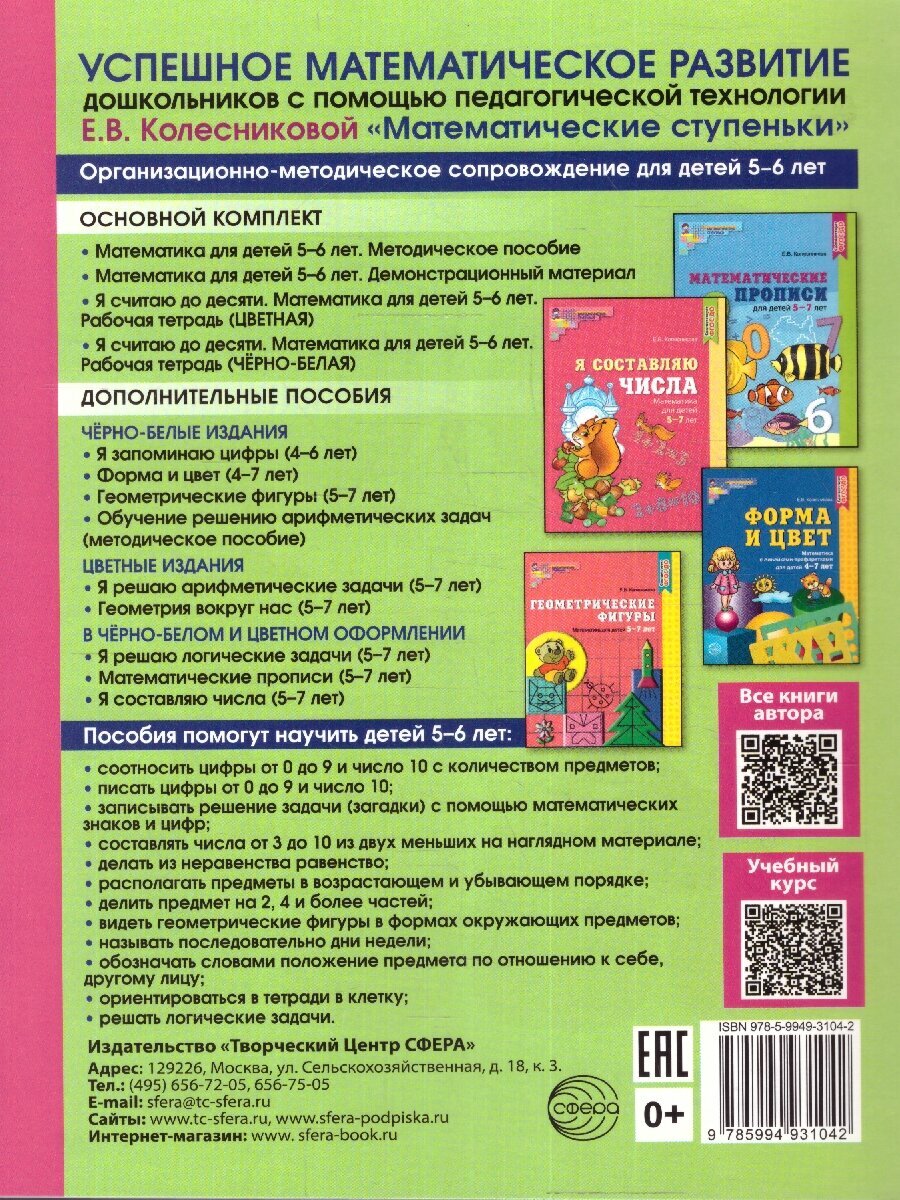 Я считаю до десяти. Рабочая тетрадь для детей 5-6 лет (Колесникова Елена Владимировна); Творческий центр Сфера Издательство, 2023