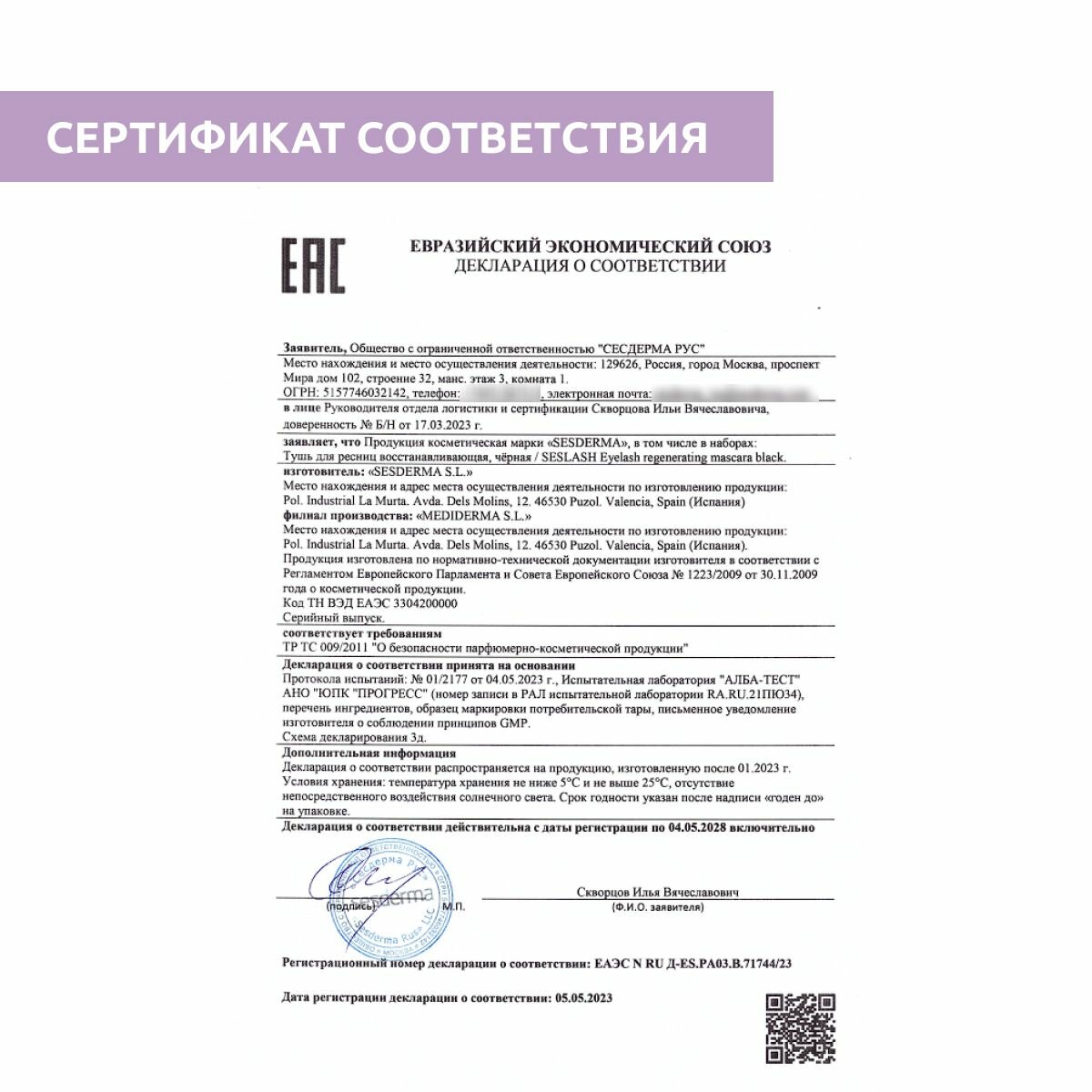 | Комплектация | SESLASH BLACK Тушь для ресниц восстанавливающая, чёрная |
