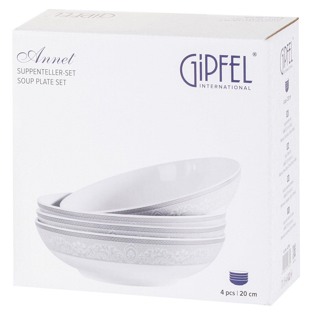 Набор суповых тарелок Gipfel Annet 42784 упакован в фирменную коробку.