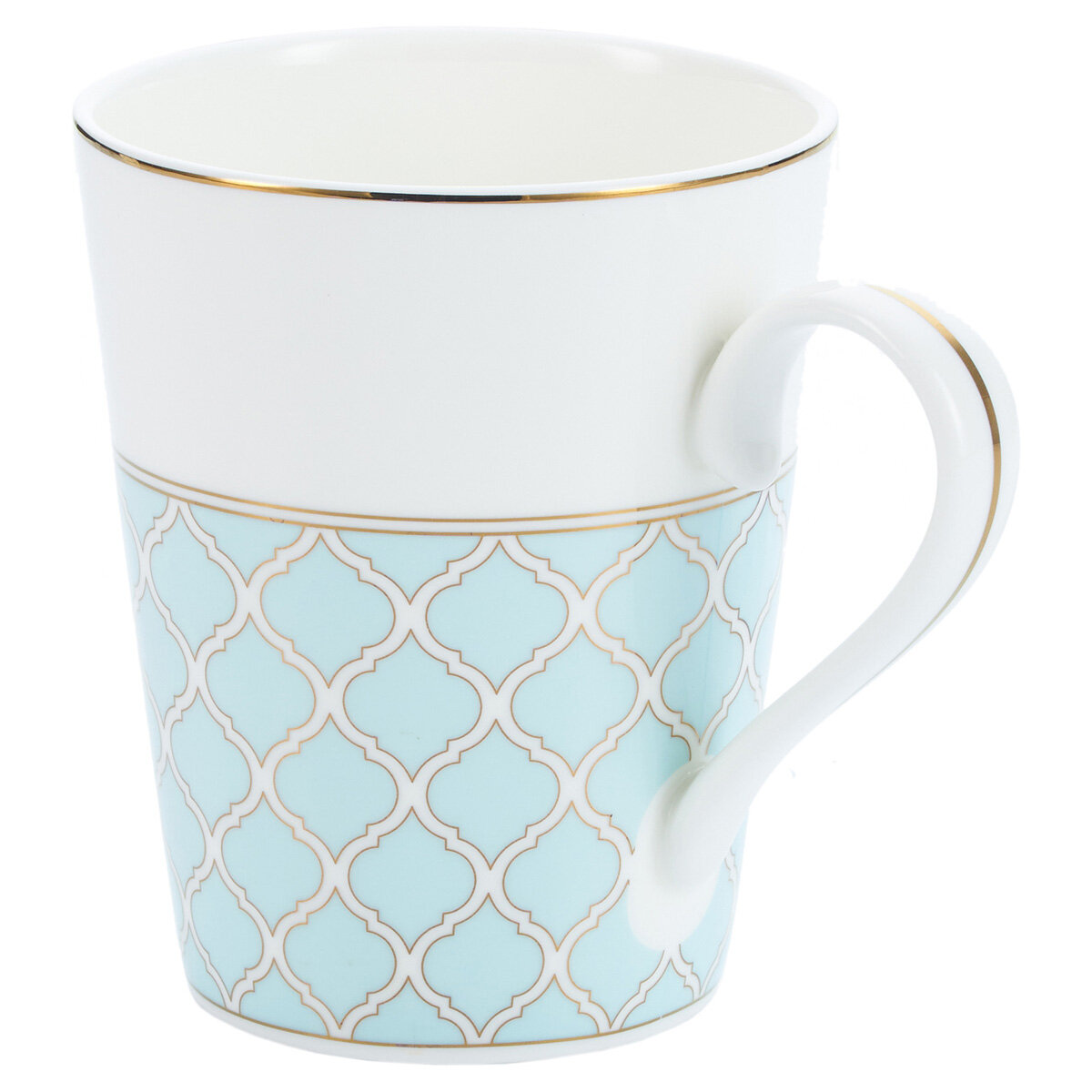 Фарфоровая посуда – это, прежде всего, эстетическое наслаждение. Ее гладкая поверхность и стильный дизайн создают великолепное визуальное впечатление. Каждая деталь фарфоровой кружки Gipfel Aurora тщательно продумана, чтобы подчеркнуть изысканность сервировки. Кружка Gipfel Aurora выполнена в современном стиле с налетом винтажности: воздушно-бирюзовая кайма с кружевным орнаментом в золоте.