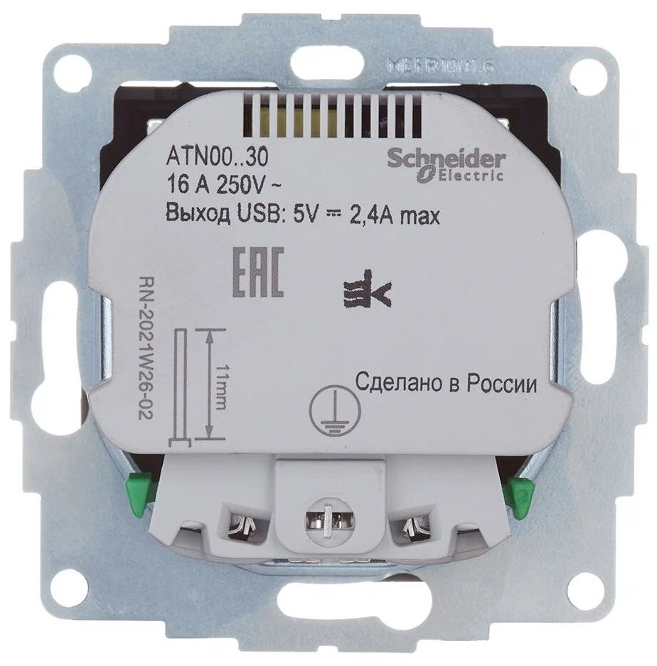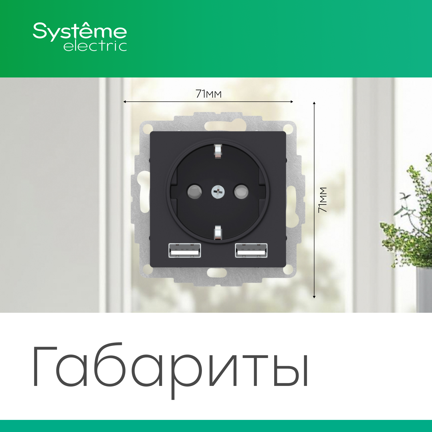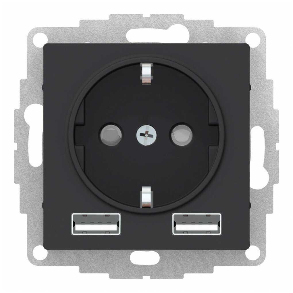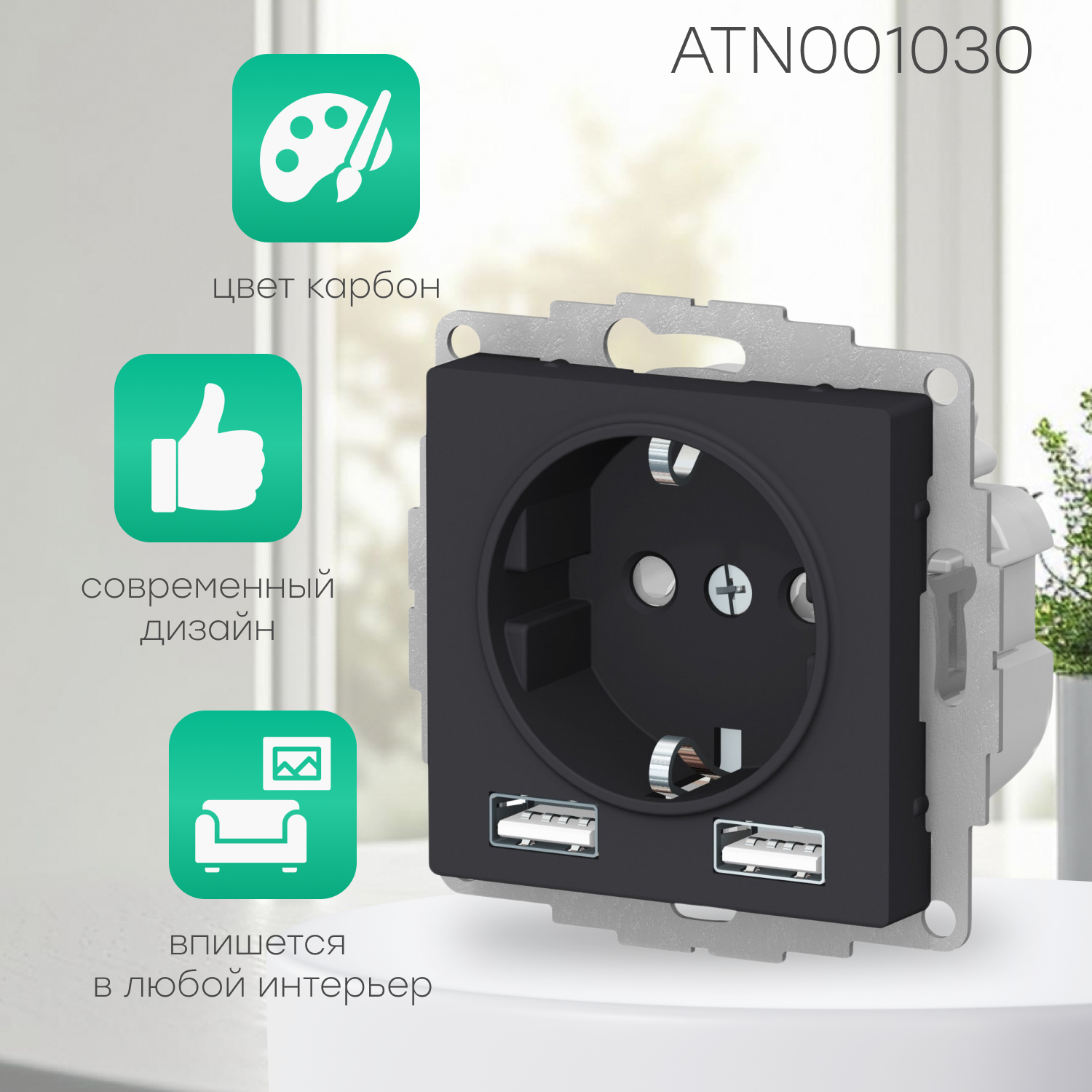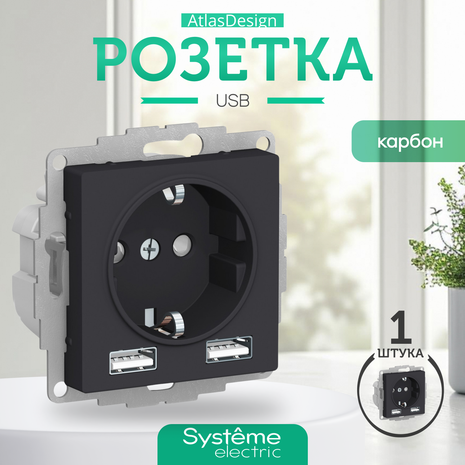 Розетка Systeme Electric AtlasDesign Карбон SO + USB A+A 5В/24А 2х5В/12 А механизм ATN001030
