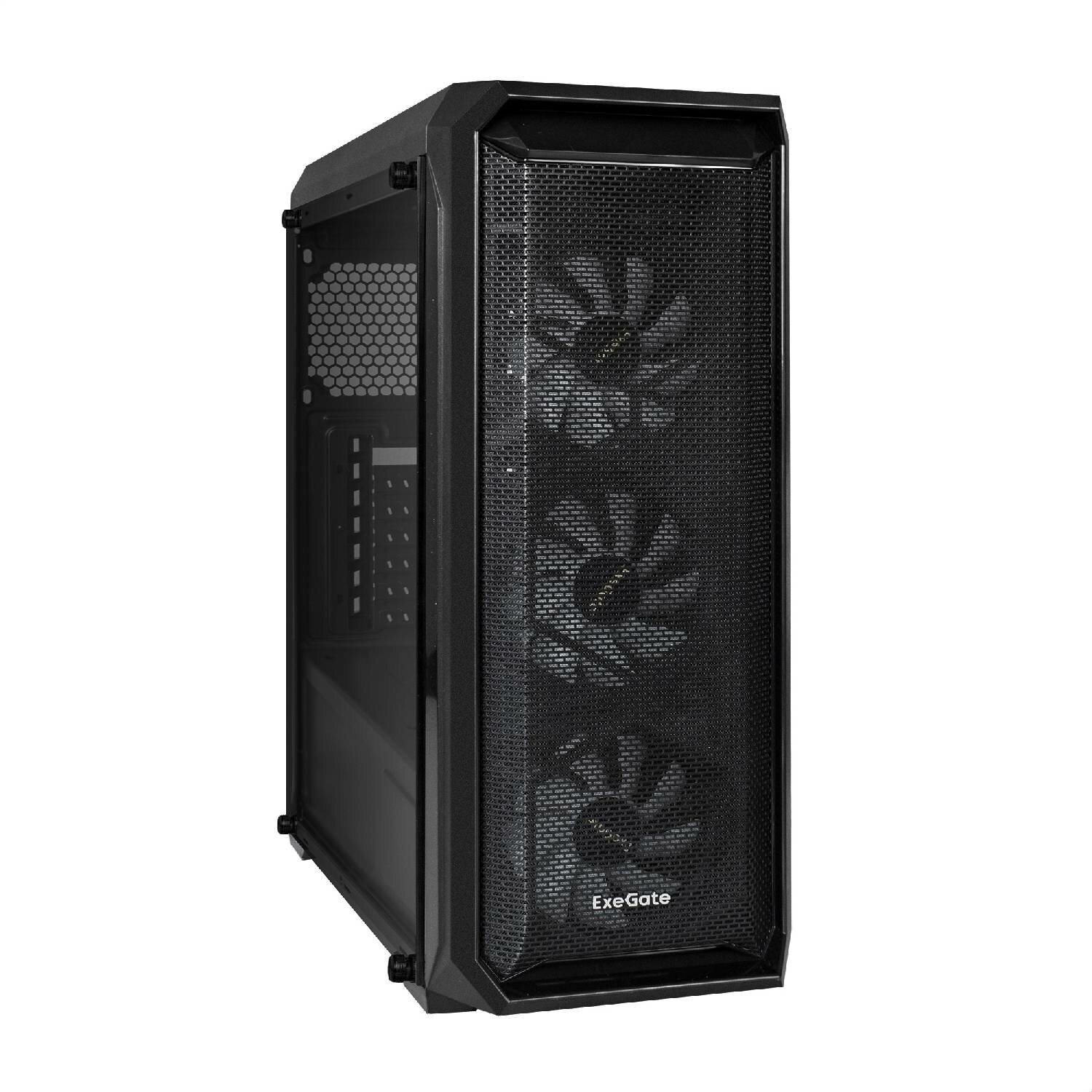 Корпус Miditower ExeGate (ATX, БП 700PPX 14см, 2*USB+1*USB3.0, HD аудио, черный, 3 вент. 12см с RGB подсветкой, контроллер + ПДУ, ARGB MB кабель, пылевые фильтры, боковая панель - закаленное стекло)