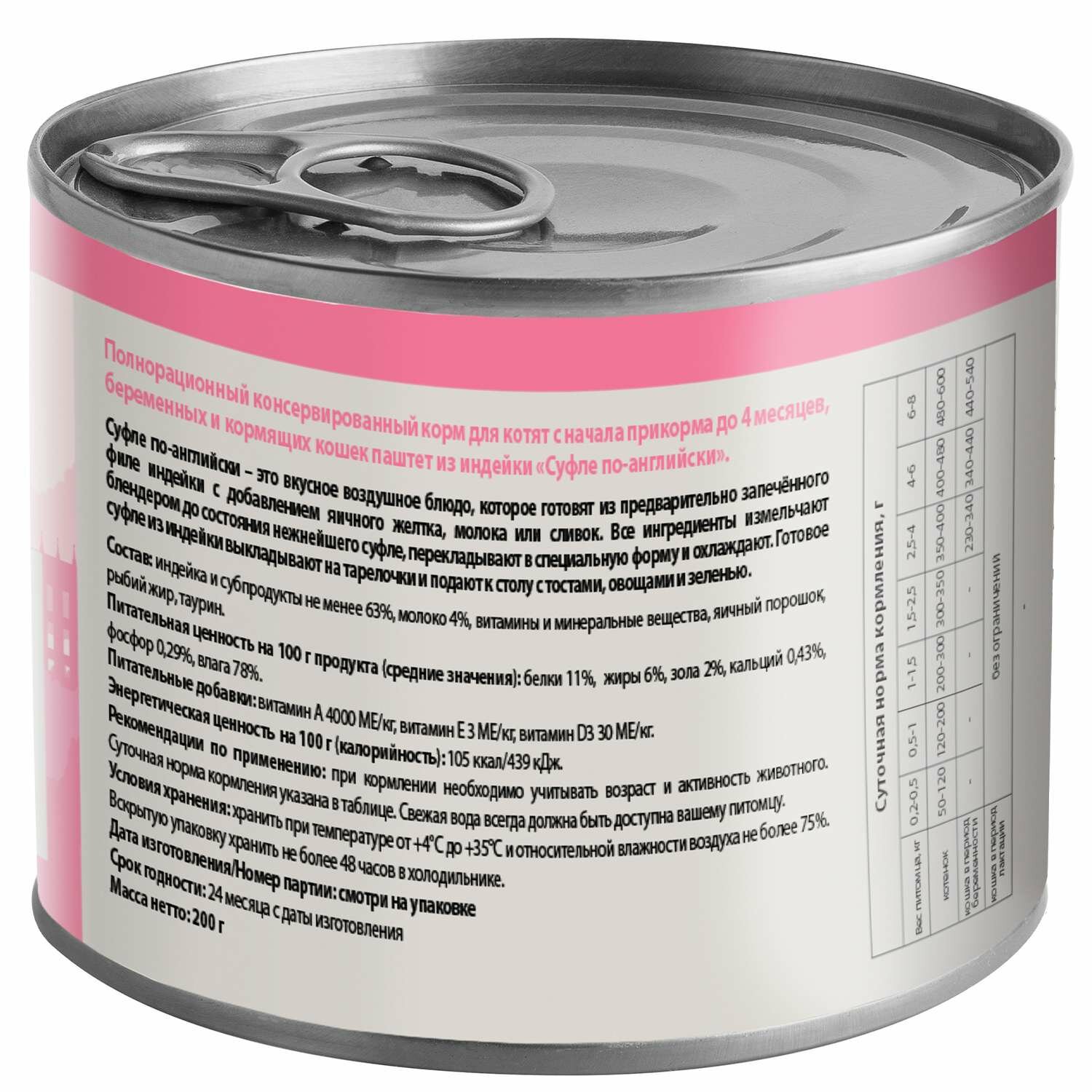 Полнорационный консервированный корм для котят с начала прикорма до 4 месяцев беременных и кормящих кошек паштет из индейки.