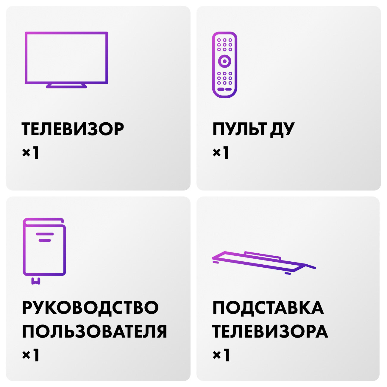 | Комплект поставки | Телевизор, подставка, пульт д/у, документация |
