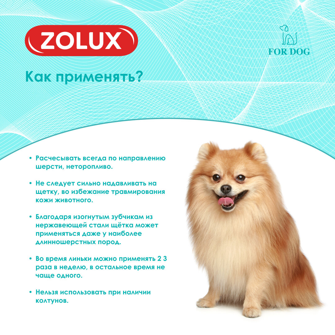 Щетка-пуходерка для собак отлично справляется с распутыванием шерсти, удалением выпавшей шерсти и вычесыванием подшерстка, а также подходит для разглаживания шерсти. Эргономичные изогнутые щетинки позволяют качественно и безопасно вычесать шерсть.