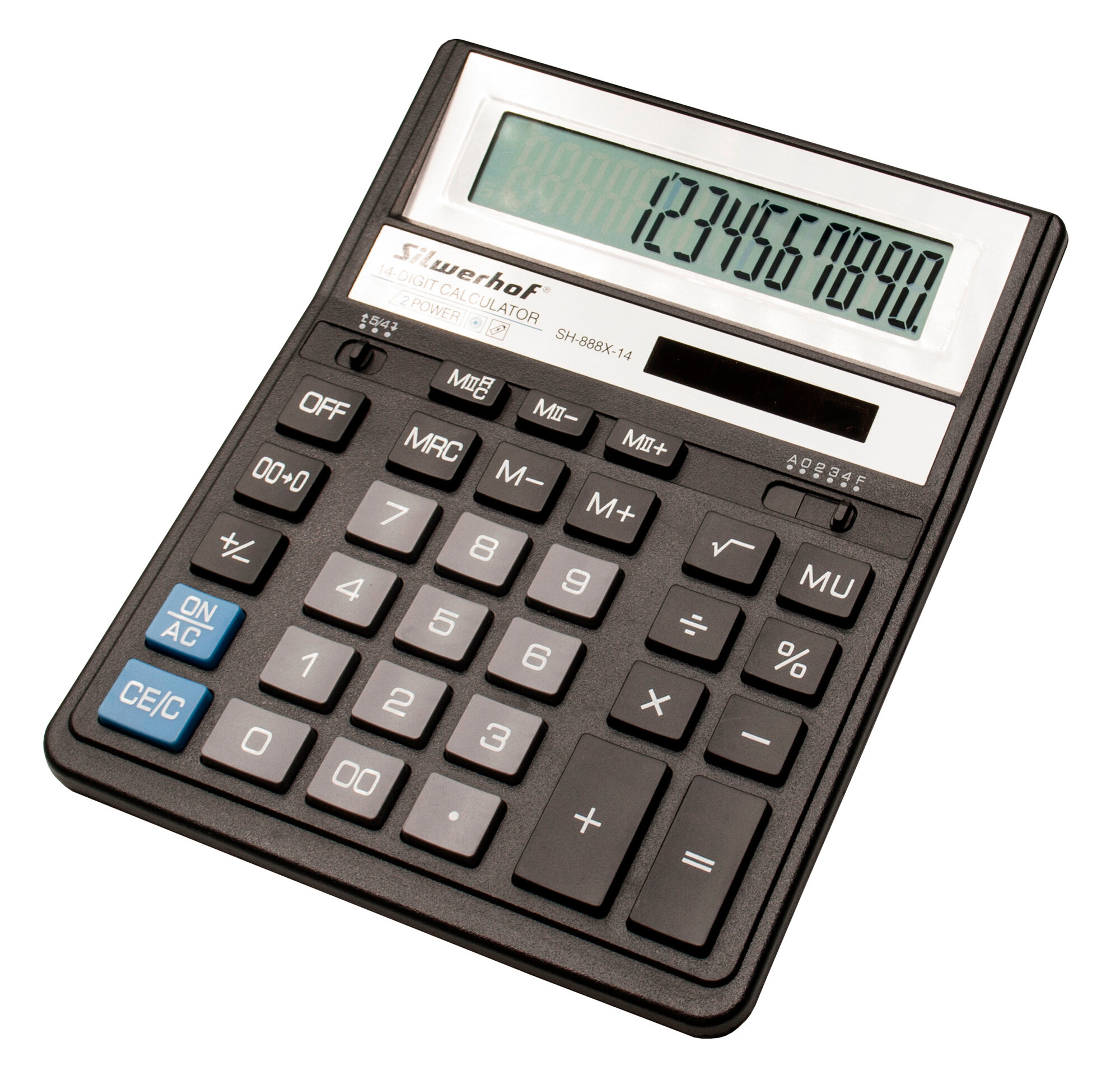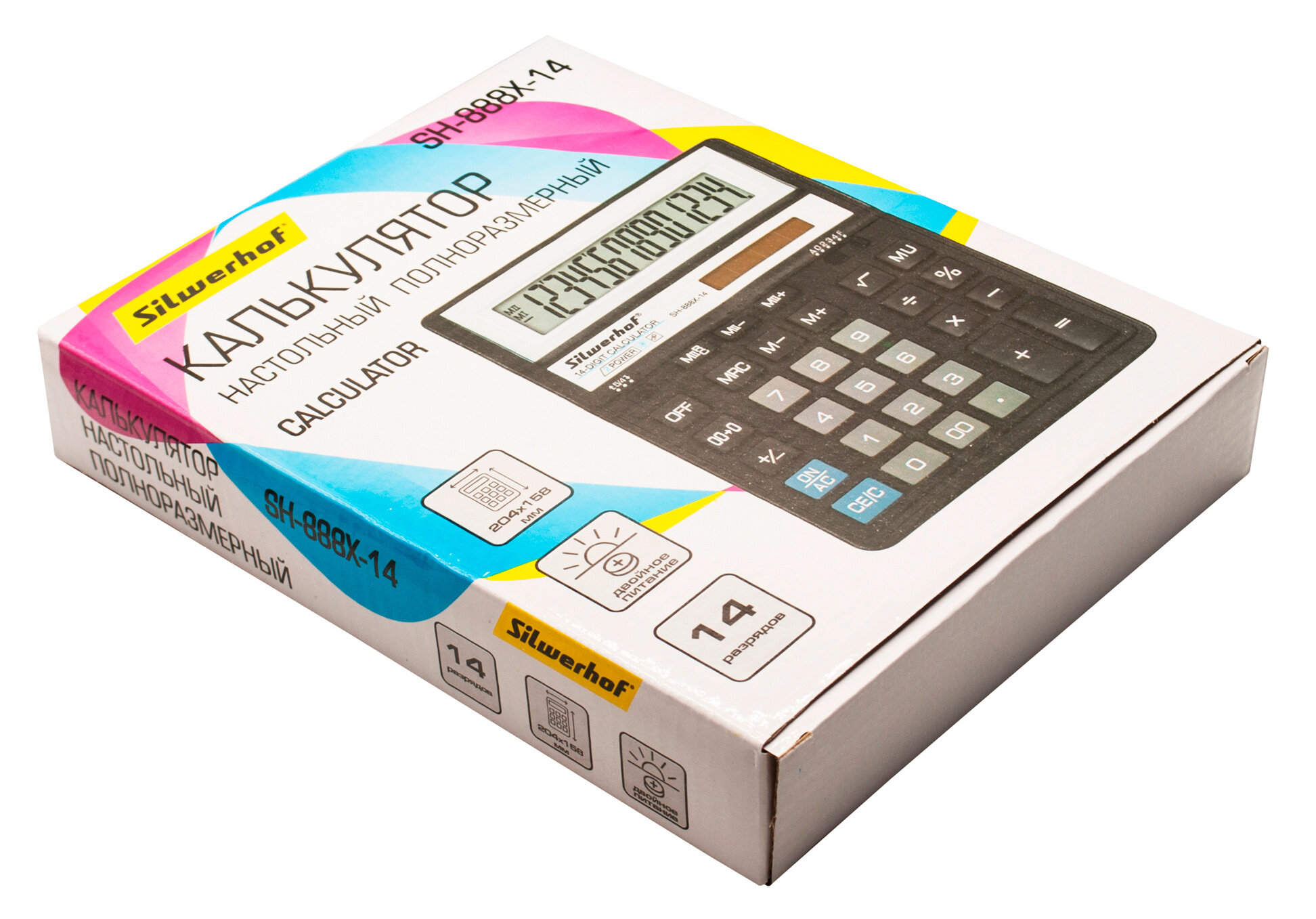 Калькулятор настольный Silwerhof SH-888X-14 черный, дисплей: 14-разрядный, 1, монохромный, питание батарея/солнечный элемент AA
