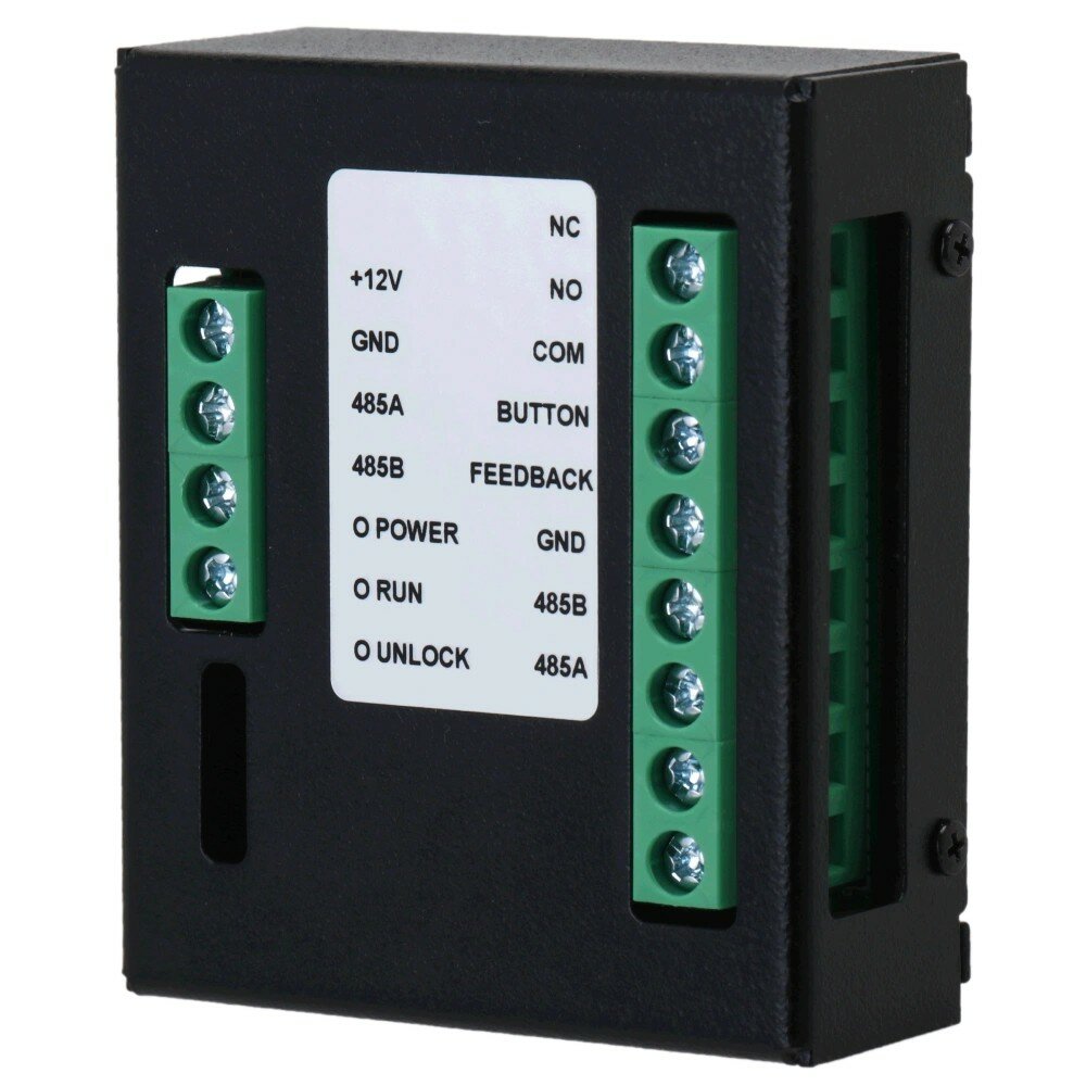 Модуль расширения контроля доступа. Подключение по RS-485. Работа с электромеханическими или электромагнитными замкам. 3 индикатора состояния, устройство включено или выключено и состояние двери.