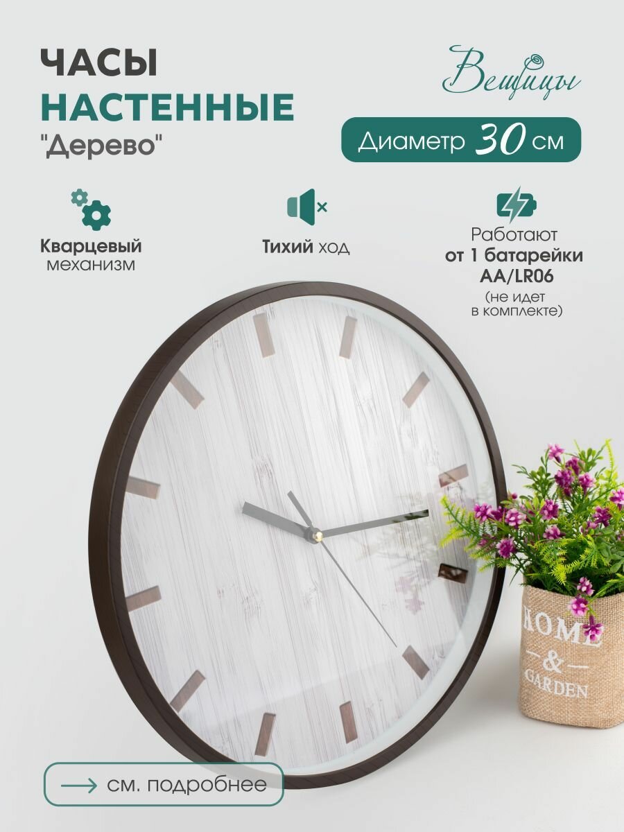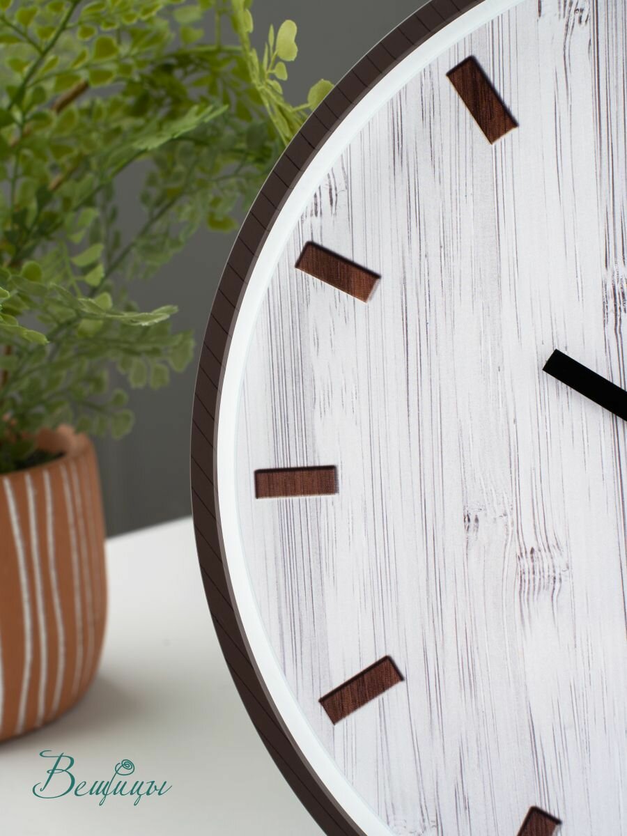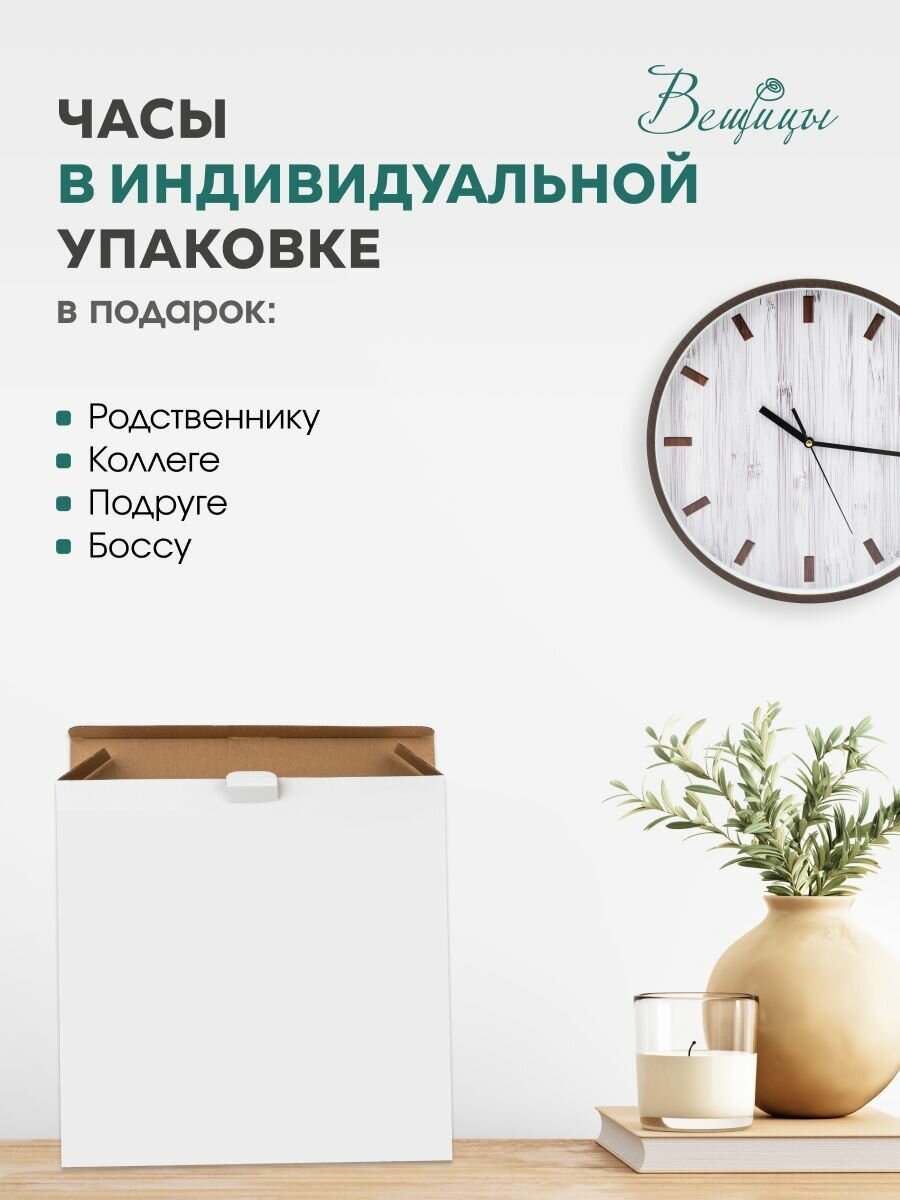 Модель Классика - ВЕЩИЦЫ часы диаметром 30 см с традиционным циферблатом. Холодный белый цвет - универсальное решение для любого интерьера. Самый главный плюс - хорошая читаемость времени и нейтральный дизайн. Черная окантовка позволяет часам привлекать внимание, когда они действительно нужны. Можно использовать как в классическом ремонте, так и в дизайнерском в духе минимализма или национальных стилей.