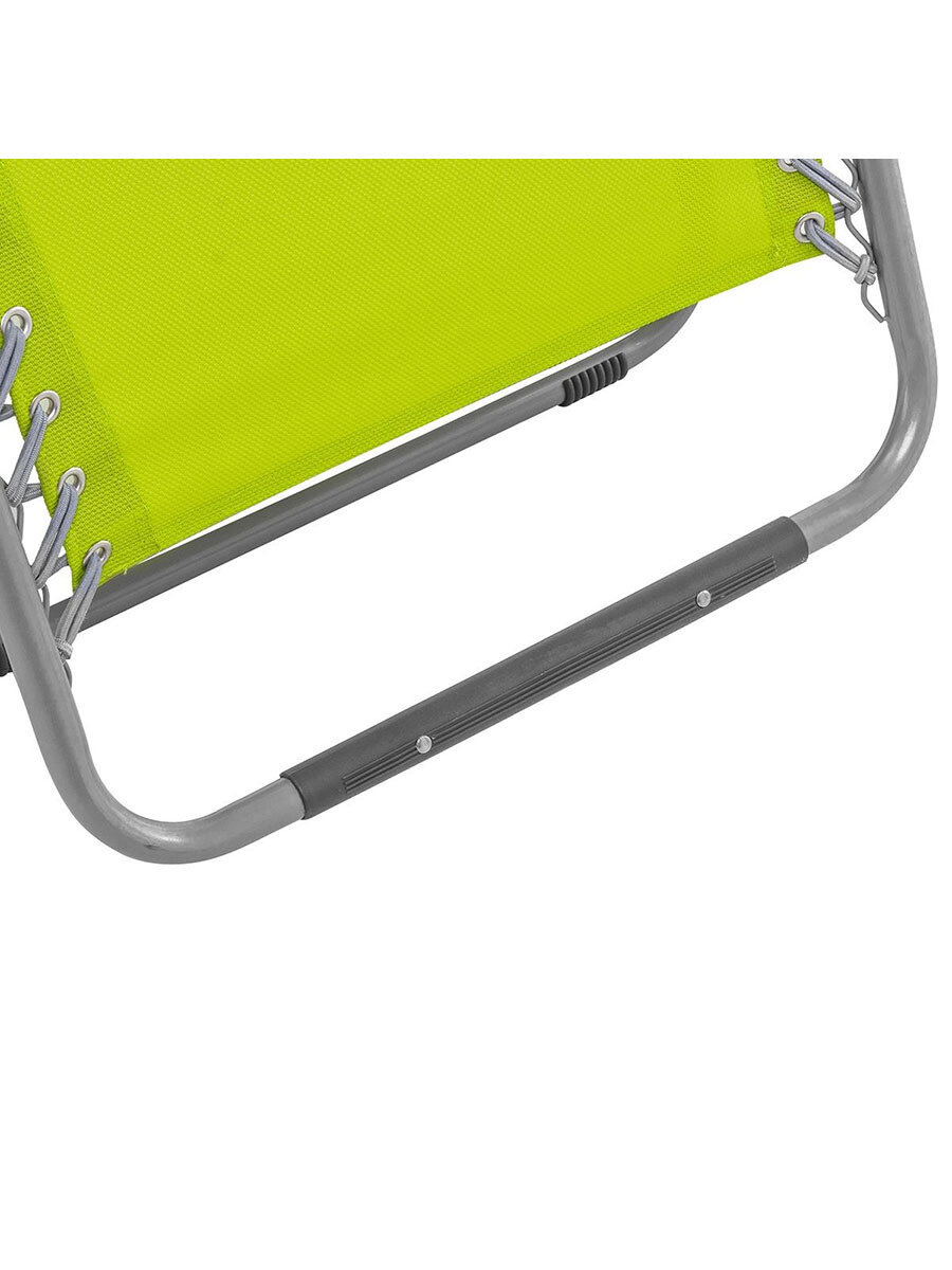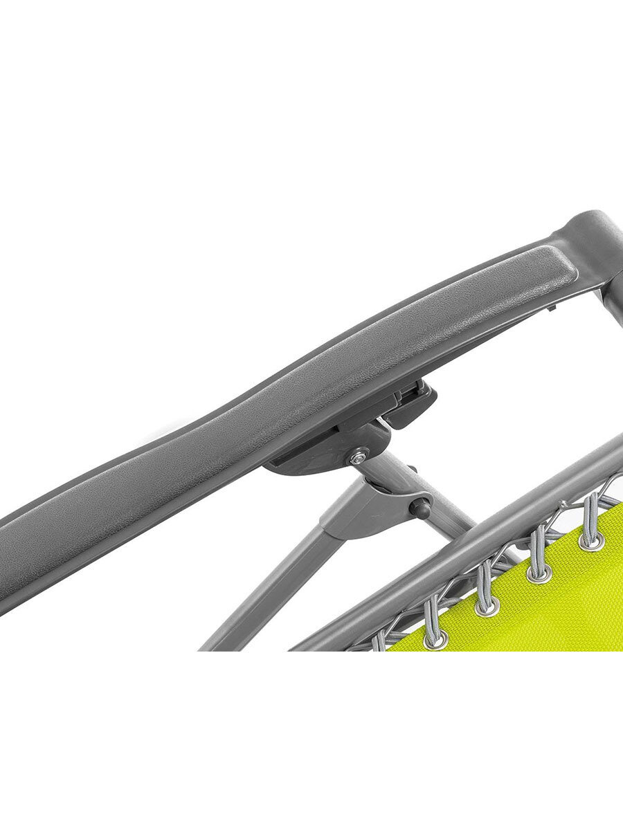 Складное кресло-шезлонг с многопозиционной регулировкой спинки, хороший выбор для дачи или дома. Имеет уникальную конструкцию, позволяющую фиксировать наклон спинки. Конструкция кресла также обеспечивает отличную поддержку спины, ног и головы. Материал сиденья - прочный сетчатый материал TEXTILENE устойчивый к ультрафиолетовому излучению и образованию плесени. Удобные, широкие подлокотники, мягкий съемный подголовник, безопасный механизм фиксации. В сложенном состоянии не занимает много места. Кресло фиксируется в разлячных положениях с помощью фиксаторов под подлокотниками.