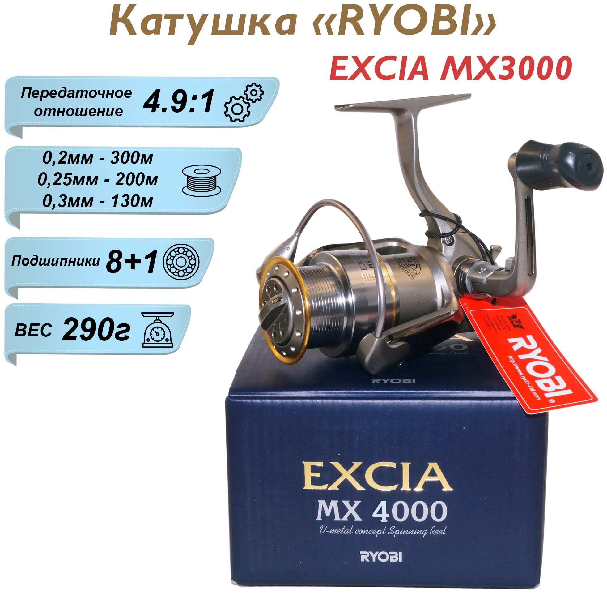 Торговая марка Ryobi предлагает серию безынерционных катушек средней ценовой категории Excia. В этой линейке учтены все требования к современным катушкам для спиннинговой ловли. Технические преимущества и невысокая цена делают эту катушку одной из самых популярных моделей для любителей ловли на спиннинг. Прочность конструкции достигается за счет металлического корпуса и надежного внутреннего механизма. Бортик металлической шпули обработан твердосплавным покрытием. Фрикционный тормоз расположен в передней части корпуса и оснащен тонкой регулировкой. Ролик лесоукладывателя обработан покрытием из нитрида титана.