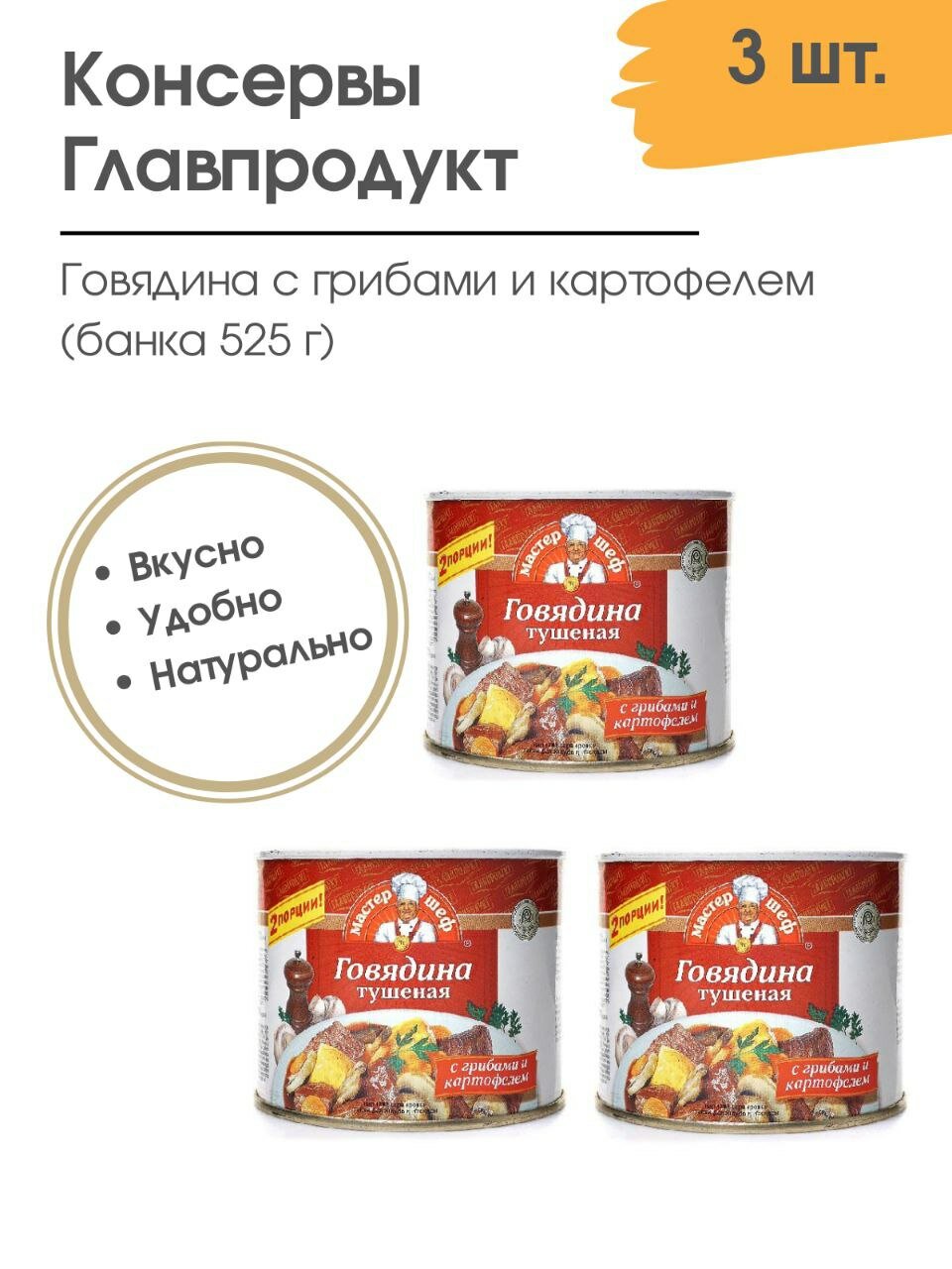 Сервис сравнения цен СкидкаГИД предлагает сравнить цены на товар «Говядина тушеная Мастер Шеф с грибами и картофелем 525 г»