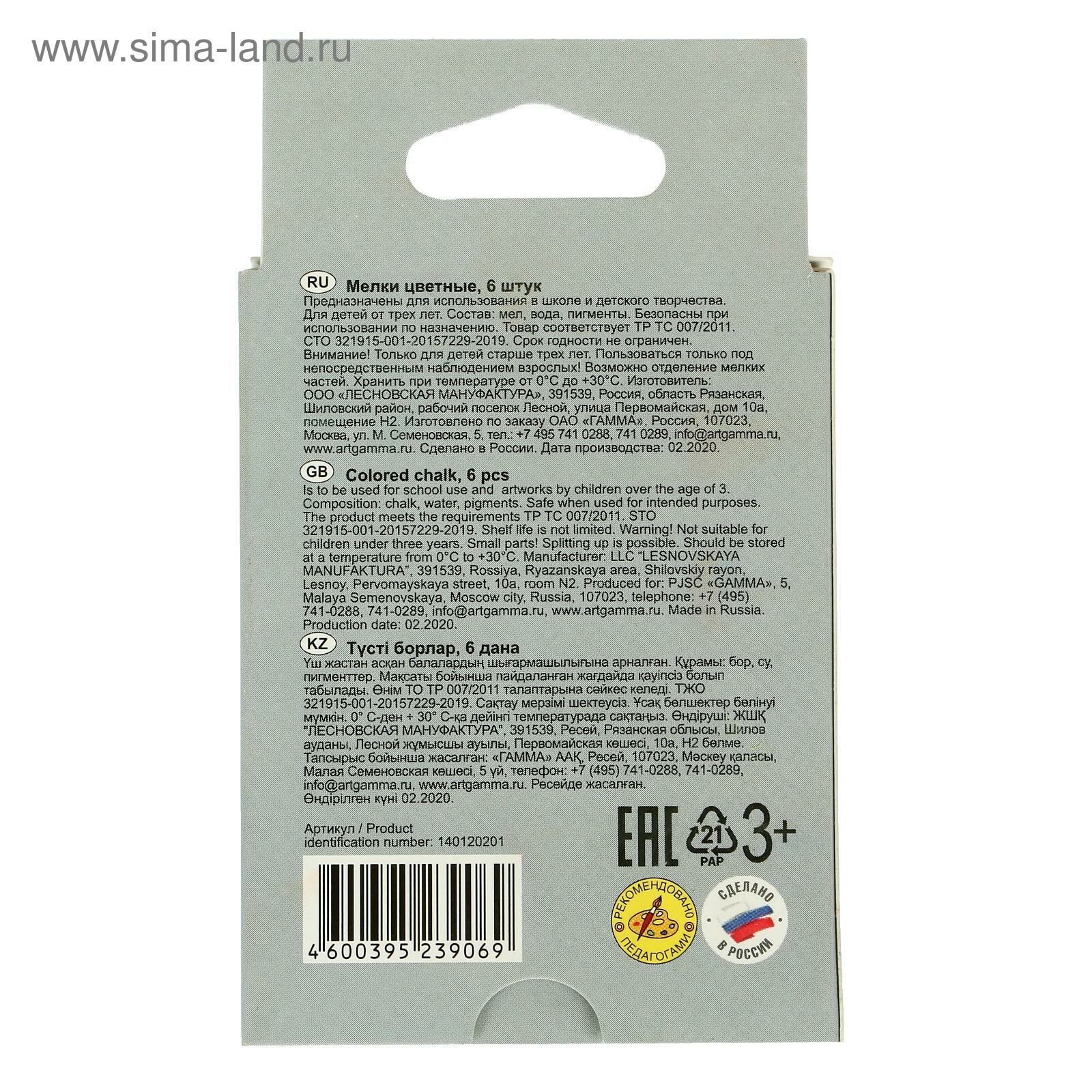 Набор из 6 квадратных цветных школьных мелков ГАММА подходит для письма или рисования на школьной доске или любой шероховатой поверхности. Длина мелка 8 см. В упаковке 6 штук в 6-ти цветах: красный, голубой, зелёный, жёлтый, фиолетовый, оранжевый. Удобная форма и мягкое письмо. Мягкие мелки состоят на 95% из натурального мела и не содержат гипс. Мел удобно лежит в руке, не царапает рабочую поверхность и не пылит при письме. Не имеют выраженного запаха. Экономично расходуется - одного набора хватает надолго. Следы мелков легко очищаются с рук. Набор упакован в картонную коробку с европодвесом. НЕ РЕКОМЕНДОВАНО ДЛЯ ПИТАНИЯ! Цвет: ассорти; Количество цветов: 6; Количество штук: 6; Форма: квадратная; Длина мелка 8 см.