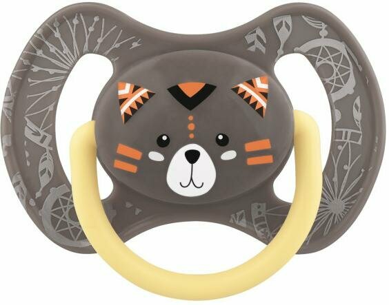 Соска-пустышка с круглым латексным соском предназначена для детей от 6 месяцев. Форма нагубника с симметрично расположенными отверстиями обеспечивает свободную циркуляцию воздуха для предотвращения появления опрелостей. Специальное углубление на нагубнике не мешает дыханию.