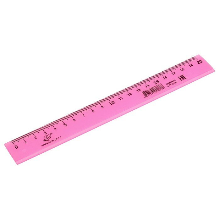 Линейка 20 см из высококачественного полистирола со шкалой.