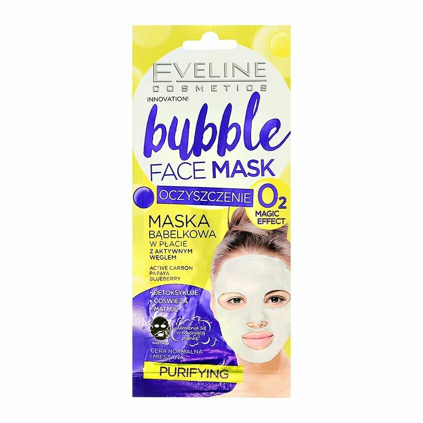 Маска для лица тканевая Eveline Cosmetics bubble face mask очищающая пузырьковая Еveline