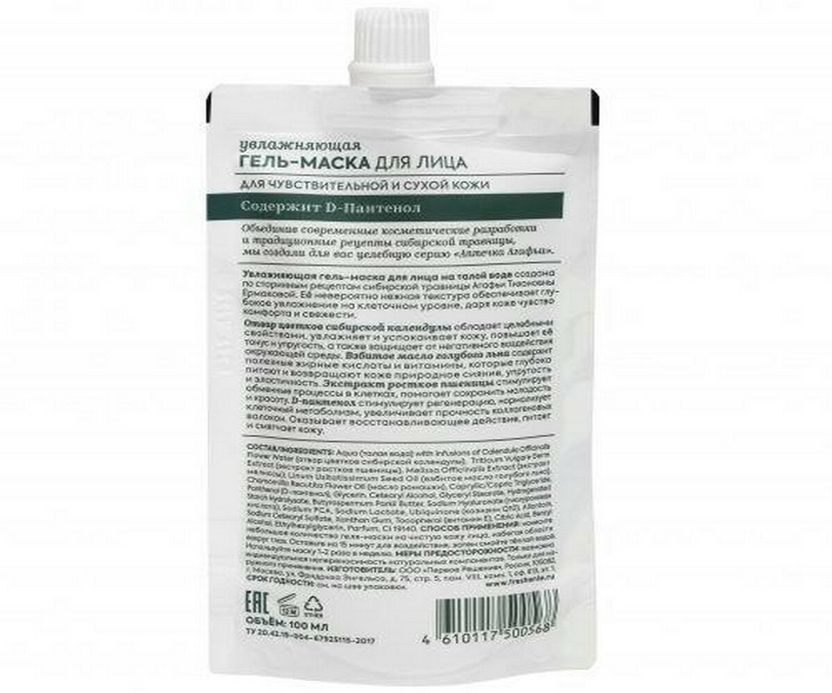 Гель-маска для лица Рецепты Бабушки Агафьи Увлажняющая для сухой и чувствительной кожи 100 мл