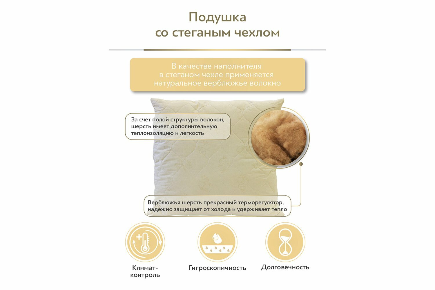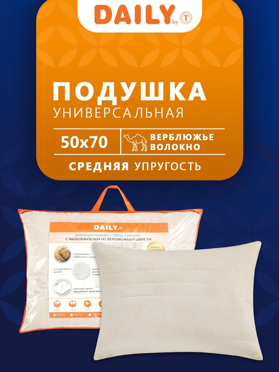 Подушка Daily by Togas Калахари, 70х70 см имеет состав, верх, 100% хлопок-тик, наполнитель чехла, 60% верблюжья шерсть, 40% полиэфирное волокно, наполнитель, 100% полиэфирное волокно. Верблюжья шерсть обладает присущими только ей свойствами. Она прочнее и легче многих видов шерсти, имеет полую структуру, благодаря которой поддерживает постоянную температуру тела. Верблюжья шерсть не только удерживает воздух, но и поглощает влагу, быстро ее испаряет, оставляя тело сухим. Шерстяной наполнитель не электризуется и имеет свойство снимать статическое напряжение. Уход: может применяться машинная стирка при температуре не выше 30 градусах. Не отбеливать. Не гладить. Сушить при низких температурах.