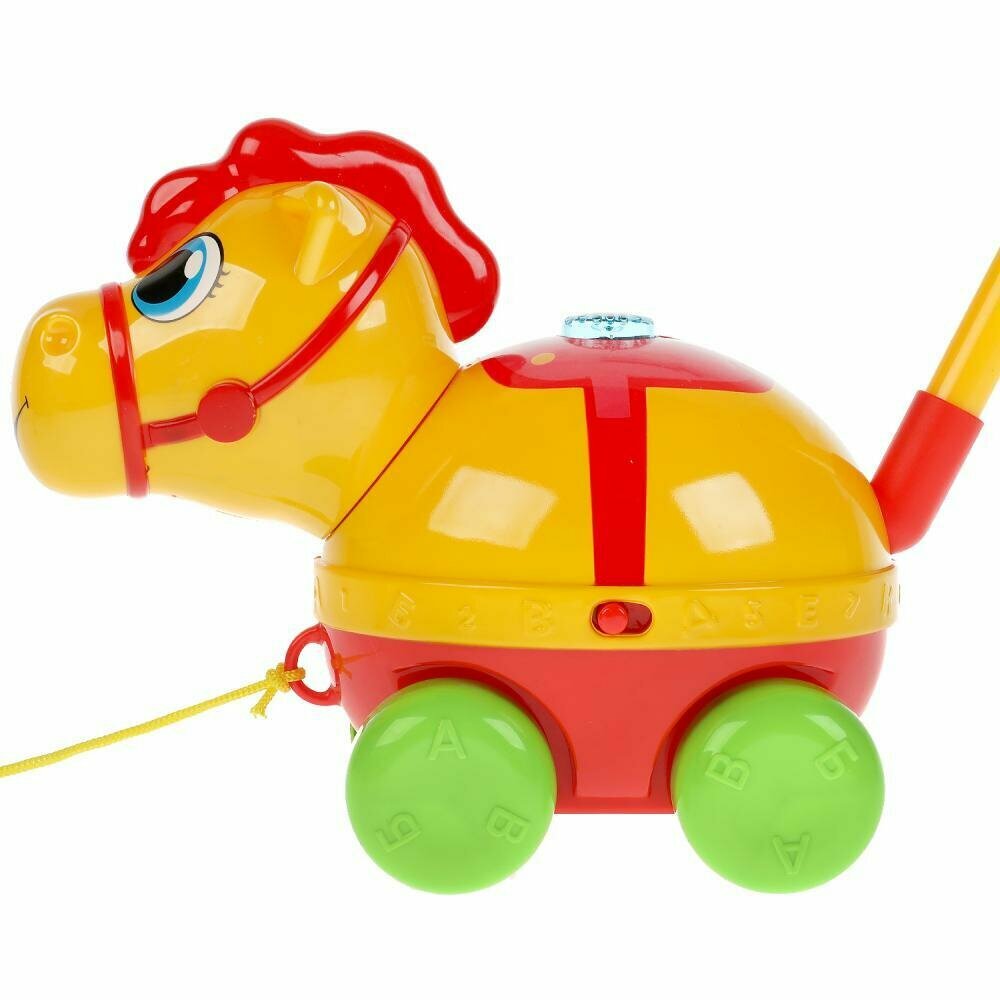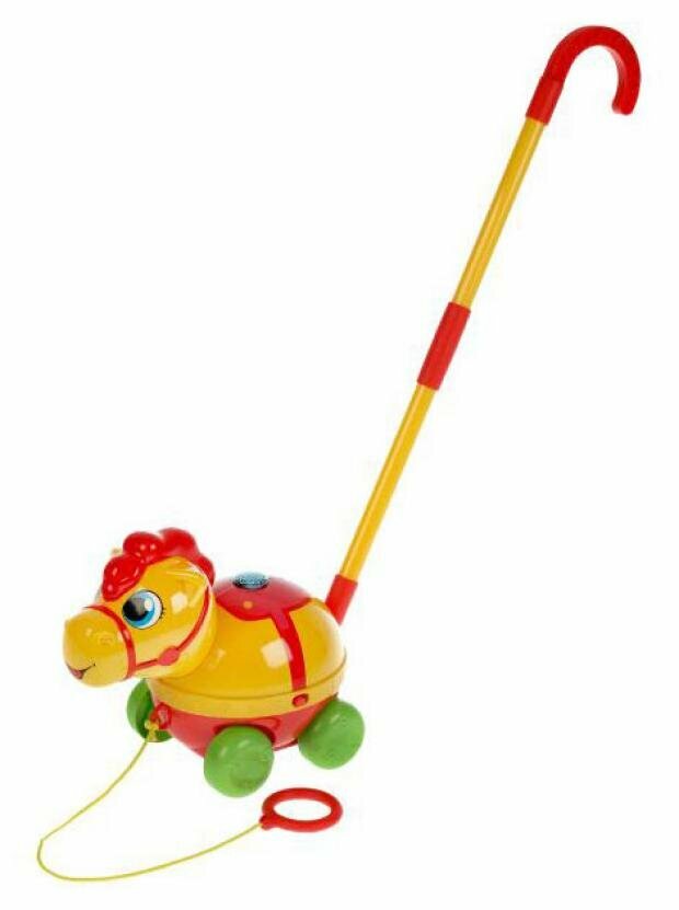 Музыкальная игрушка станет прекрасным подарком для маленьких поклонников одноименного мультсериала: 50 песен, стихов и звуков, световые эффекты, ручка-каталка и веревочка в комплекте, кнопка Вкл./Выкл.. Вашего малыша приведет в восторг эта игрушка в виде милой лошадки. Он с удовольствием будет включать и слушать веселые песенки. Кроме того, у игрушки есть колесики, и с ней можно играть как с каталкой - возить за веревочку или за палочку.