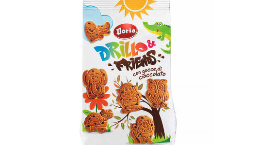 Песочное печенье, которое покорит и мам и малышей, так как оно: вкусное, содержит много кусочков шоколада, в форме животных- ребенок вкусно ест, играет и изучает окружающий мир. Песочное печенье Drillo and friends с высокой энергетической ценностью (58 ккал в 1 печеньке) помогает детям расти весело и со вкусом. Doria- один из брендов группы Bauli, в портфель которой входят крупные торговые марки, вошедшие в историю на рынке итальянских кондитерских изделий. Традиции, качество, вкус и стремление к совершенству являются общими элементами этой уникальной комбинации знаковых продуктов, которые остаются одними из самых любимых лакомств на протяжении многих поколений.