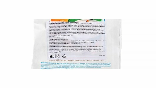| Состав | Мука пшеничная, сахар, растительные масла и жиры (подсолнечное и кокосовое), шоколадная крошка (сахар, какао масса, какао масло, эмульгатор |