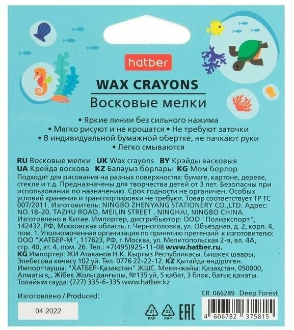 Цветные восковые мелки имеют яркие цвета, позволяют наносить ровные штрихи и не требуют заточки. Имеют удобную круглую форму в сечении. Позволяют рисовать на картоне, бумаге, дереве и других шероховатых поверхностях. Каждый мелок обернут в бумажную упаковку, поэтому они не пачкают руки и выдерживают сильный нажим. В наборе 12 цветов, диаметр мелка 8 мм, длина - 90 мм. Упаковка: красочная картонная коробка, европодвес.
