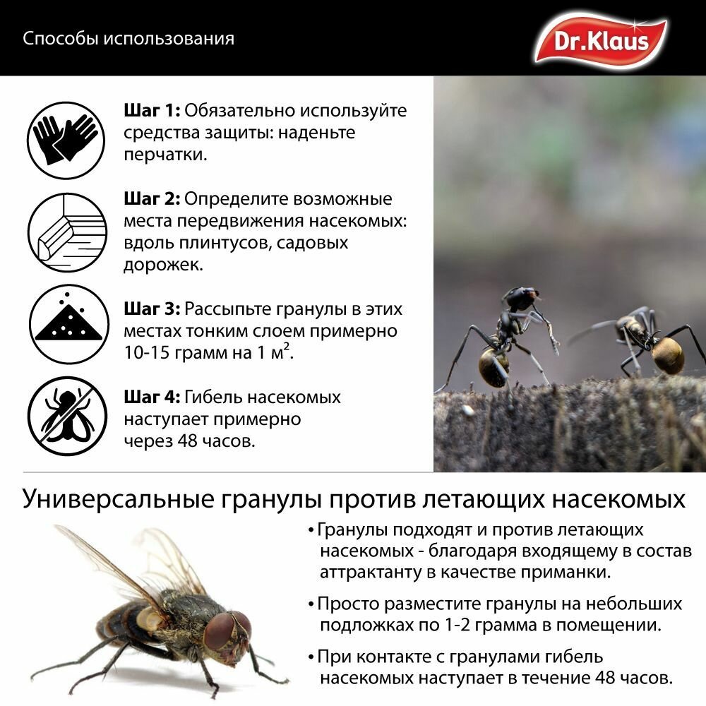 - Гранулы эффективны как против ползающих, так и от летающих насекомых.