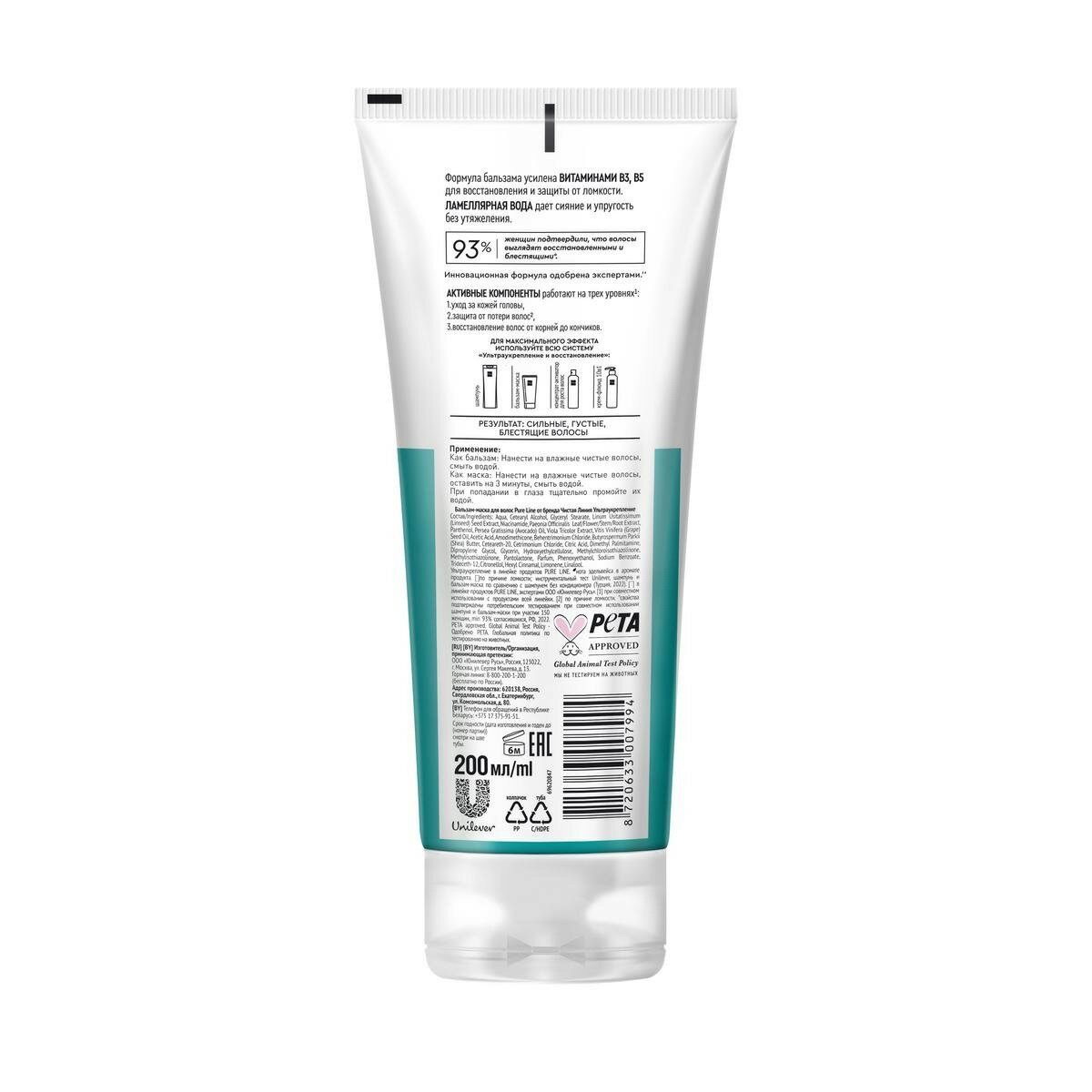 Бальзам-маска для волос Чистая Линия Ультраукрепление и восстановление с витаминами B3 и B5 200 мл