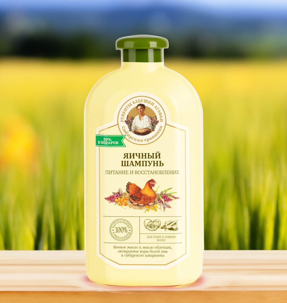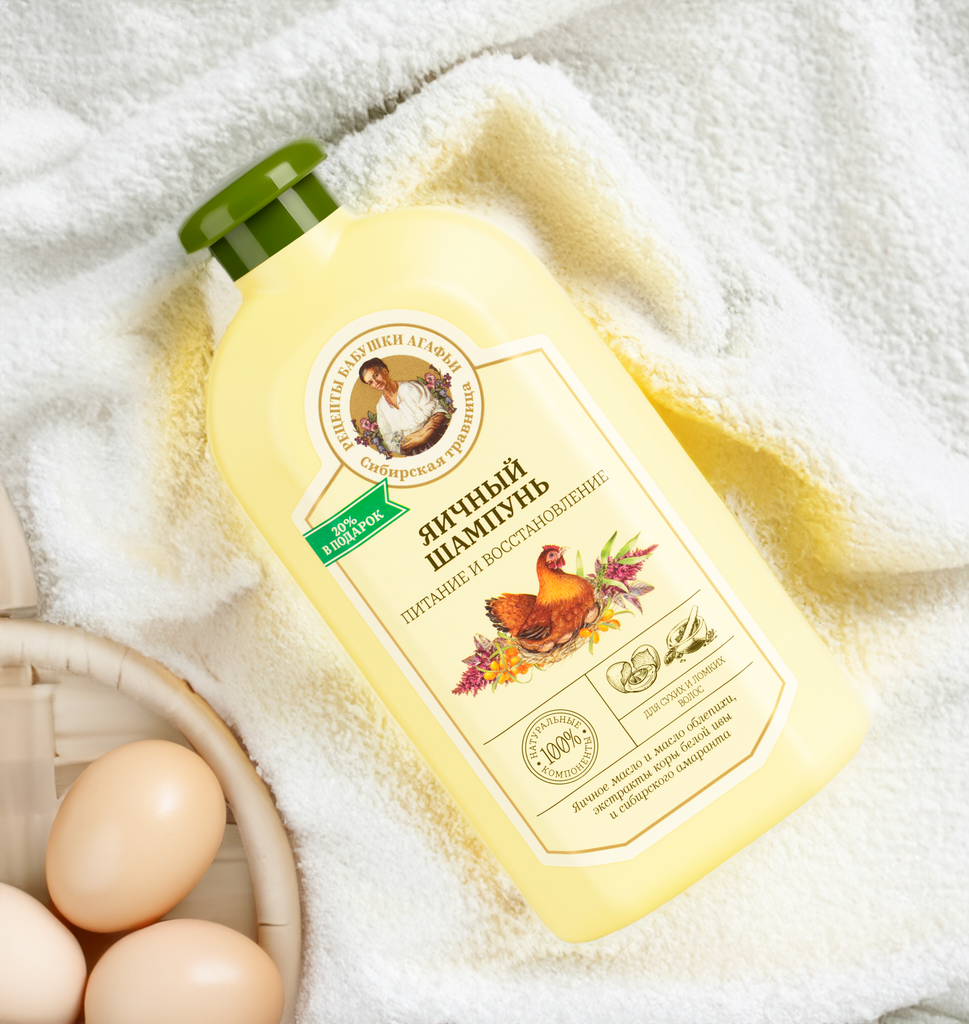 Шампунь для волос Рецепты Бабушки Агафьи Сибирская Травница Питание и восстановление яичный для сухих и ломких волос 500 мл