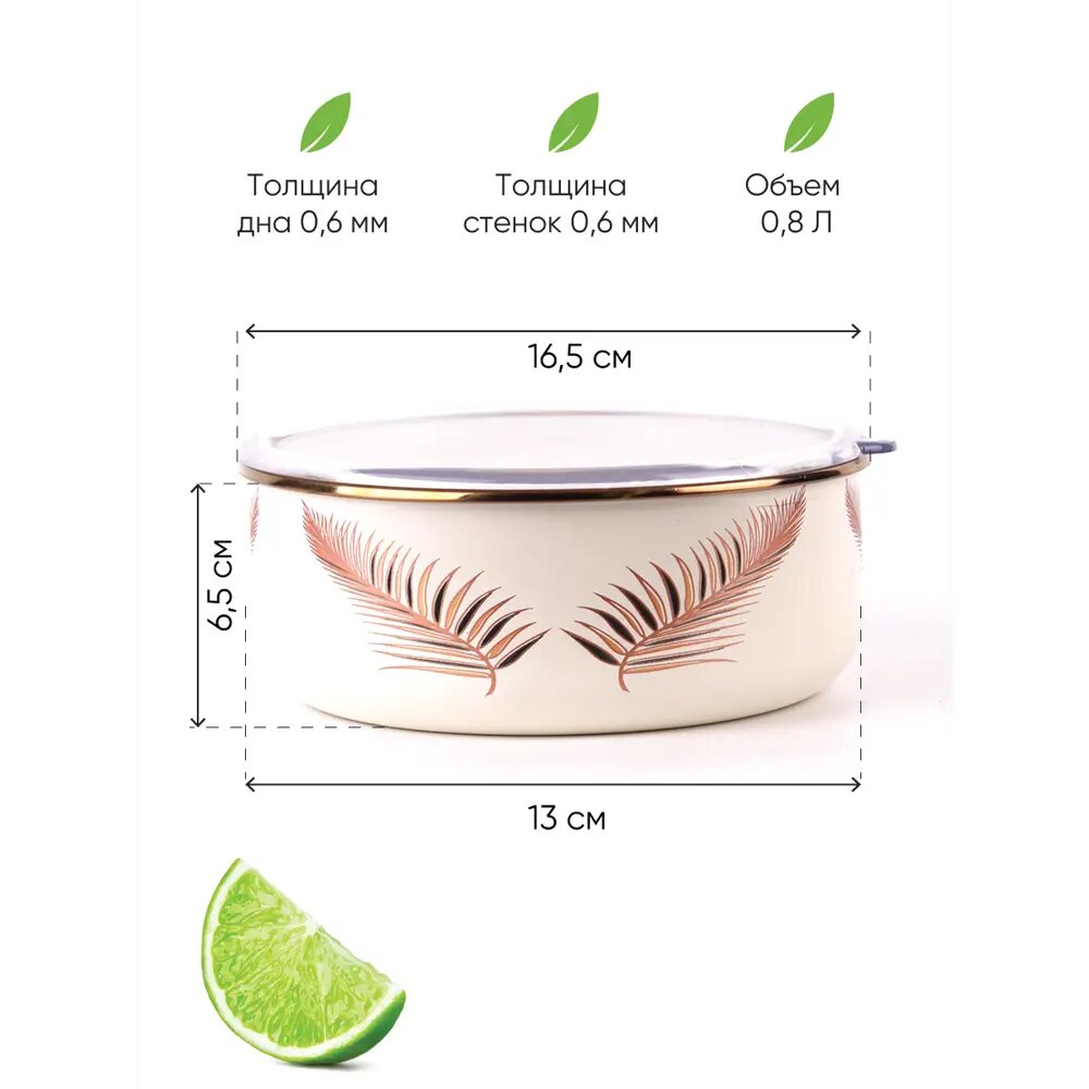 Миска Катюша Листья эмалированная с крышкой 800 мл
