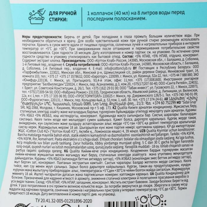| Состав | <5% кпав, <5% нпав, экстракт хлопка, отдушка, консервант |