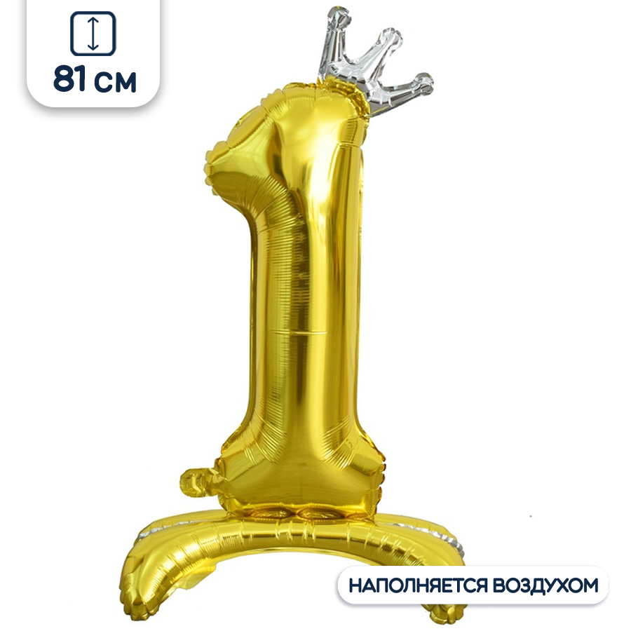 Объемная фольгированная фигура на подставке в форме цифры золотого цвета с серебряной короной. Шар имеет встроенный клапан для надува. Данный шар представляет собой цельную фольгированную фигуру, которая надувается полностью через один клапан, находящийся сбоку, вместе с основной частью сразу же надуется и нижняя часть в виде подставки. Рекомендуется надувать данный шар воздухом при помощи ручного насоса или специального компрессора для фольгированных шаров, например,1305-0233 Компрессор воздушный FOIL PRO.