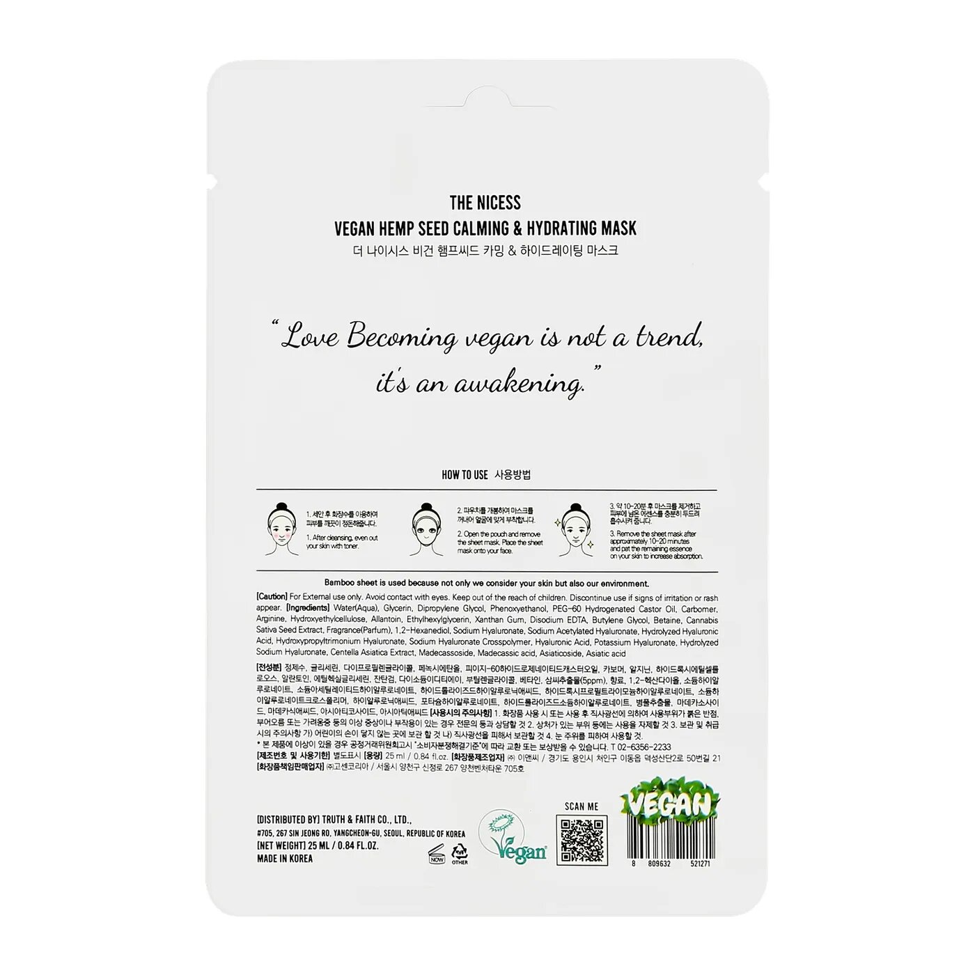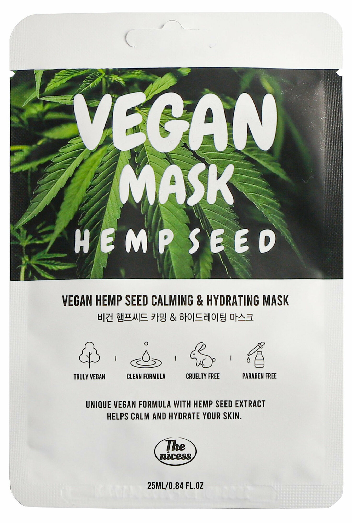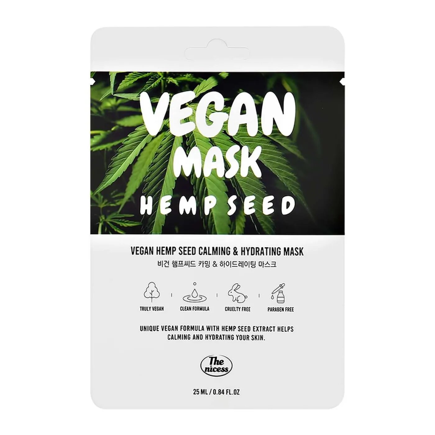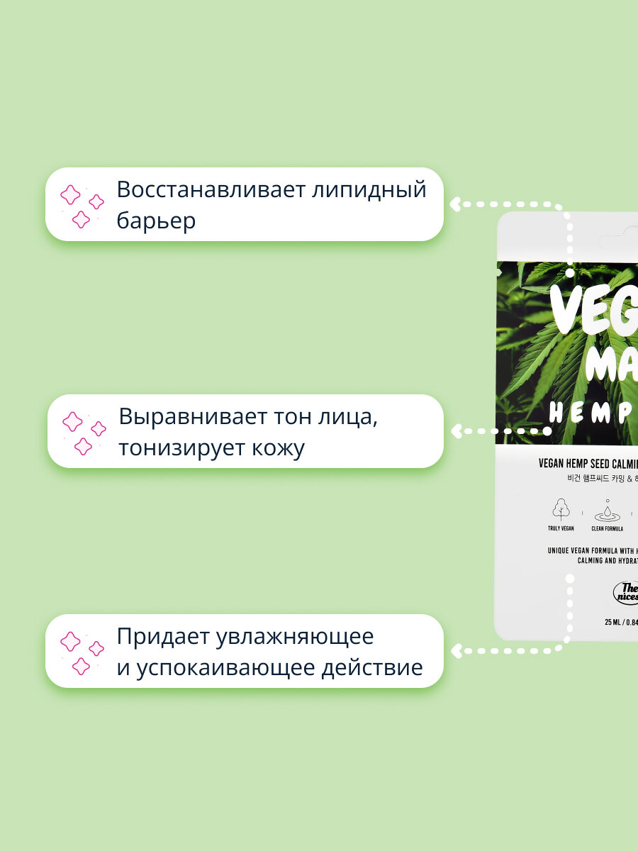 Маска для лица The nicess Vegan с маслом конопли тканевая 25 мл