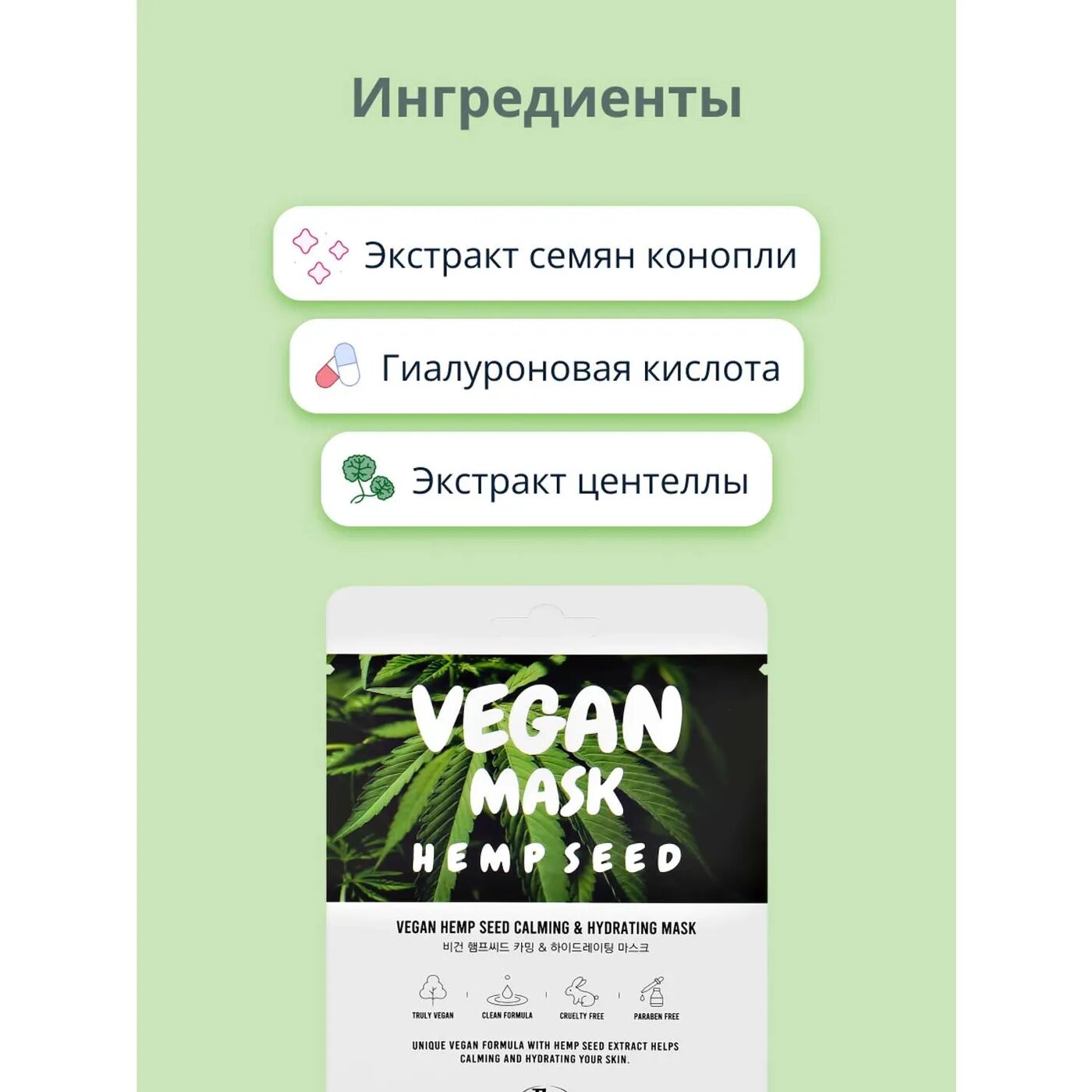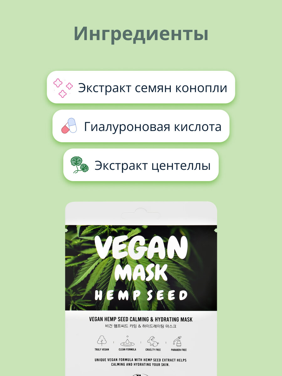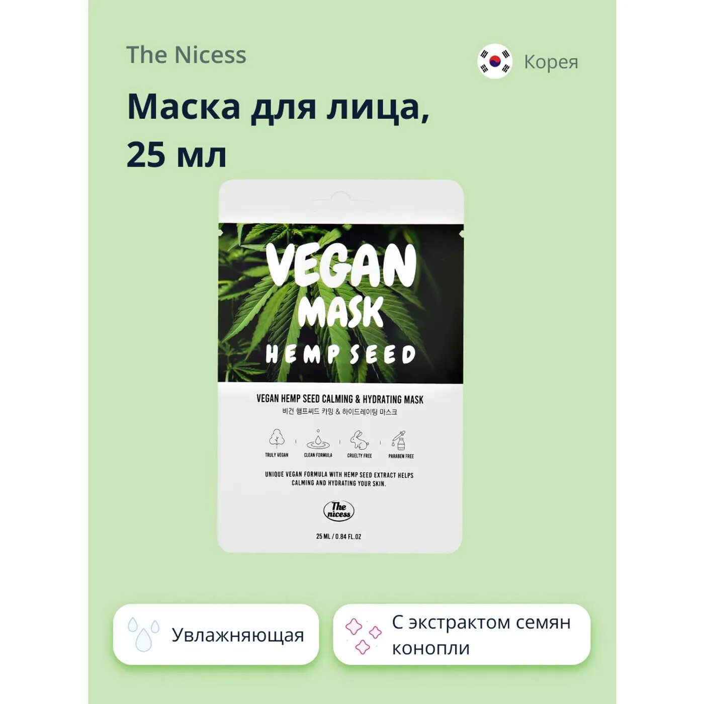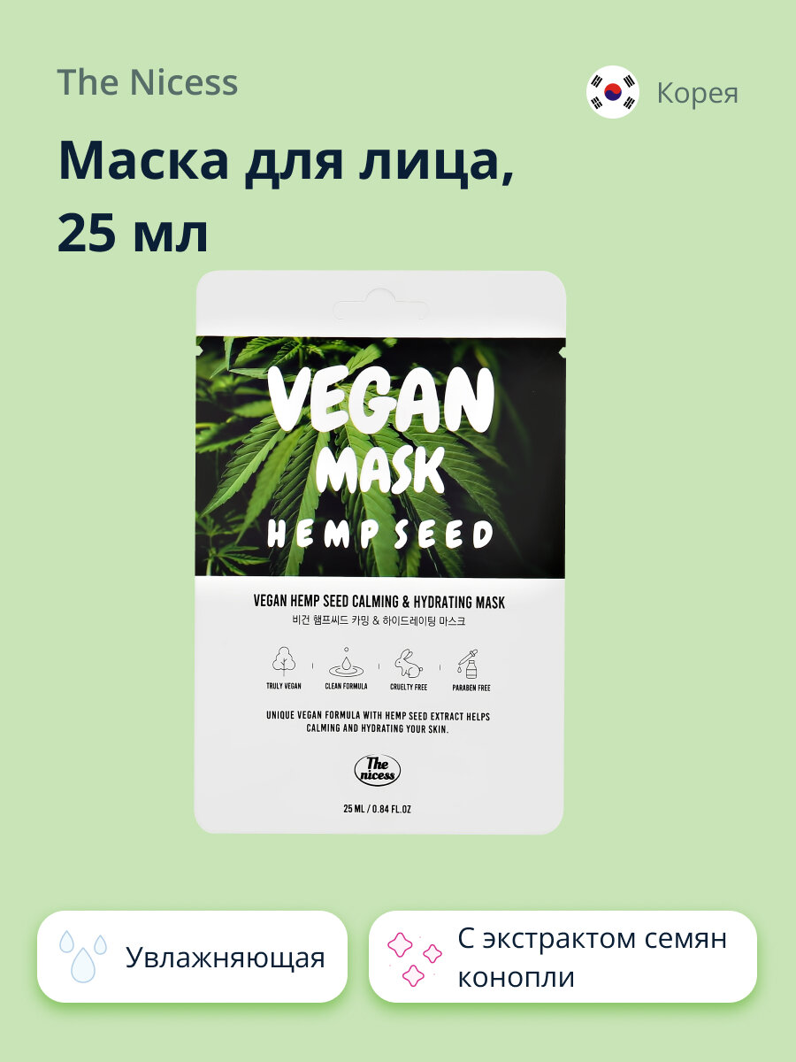 | Состав набора | Маска тканевая для лица The nicess Vegan с маслом конопли 25 мл |