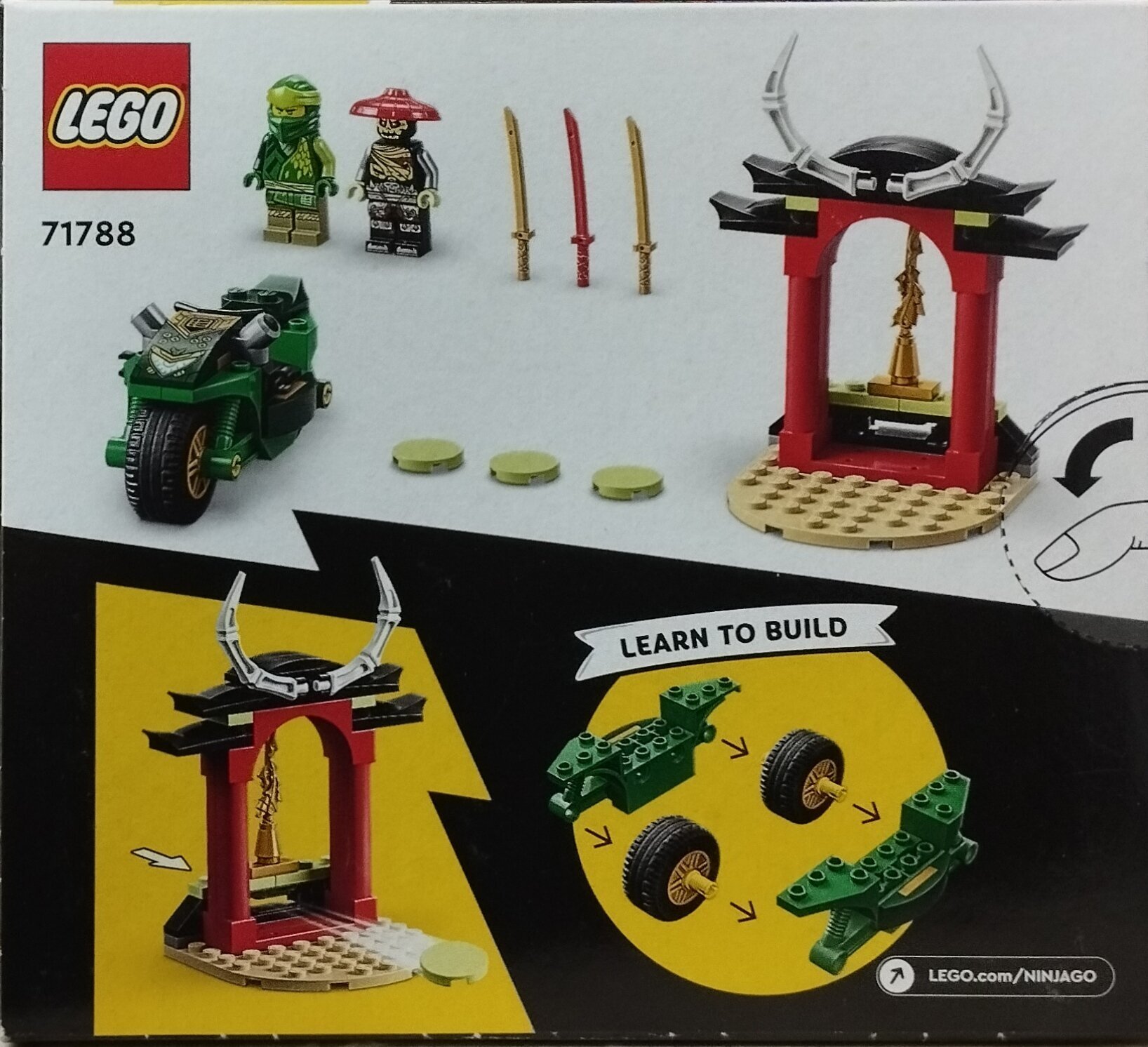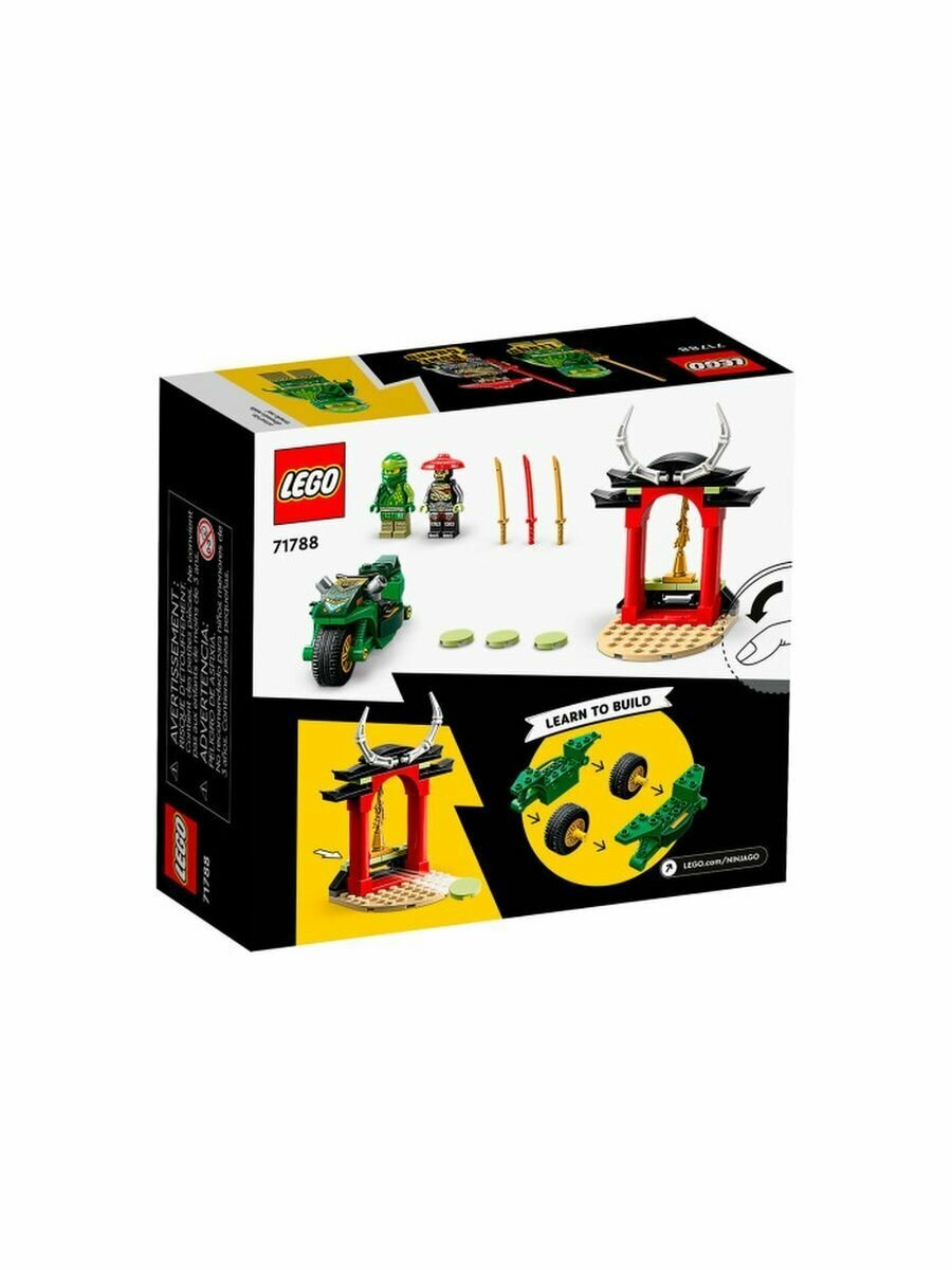 Байк Лего Ниндзяго Мотоцикл Ллойда Ниндзя (71788) станет отличным подарком для детей в возрасте от 4 лет и поможет им развить навыки конструирования и рассказывания историй. Он включает в себя супер крутой мотоцикл ниндзя, костяной храм и 2 минифигурки, Джея и Костяного стража, для бесчисленных веселых приключений.