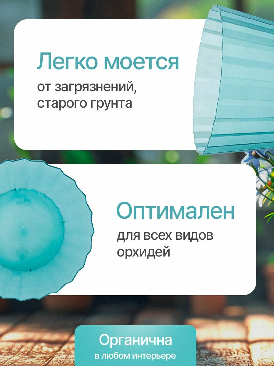 Коллекция Кашпо для цветов Sand Orchid Cristallo - изящное движение воздуха. 3D форма кашпо объединяет фактуру песочных барханов и прогрессивные конструкторские решения небоскребов. Каждая объемная складка внешней поверхности создает воздушный канал, снабжающий корни растений кислородом и отводящий излишки тепла. Прозрачные стенки Sand Orchid Cristallo обеспечивают непрерывный фотосинтез и идеальные условия для орхидей. Отсутствует необходимость в поддоне. Изделие выполнено из прочного и легкого полистирола, устойчиво к внешним воздействиям, а также не выгорает на солнце. Легкий уход- горшок достаточно протереть влажной тканью.