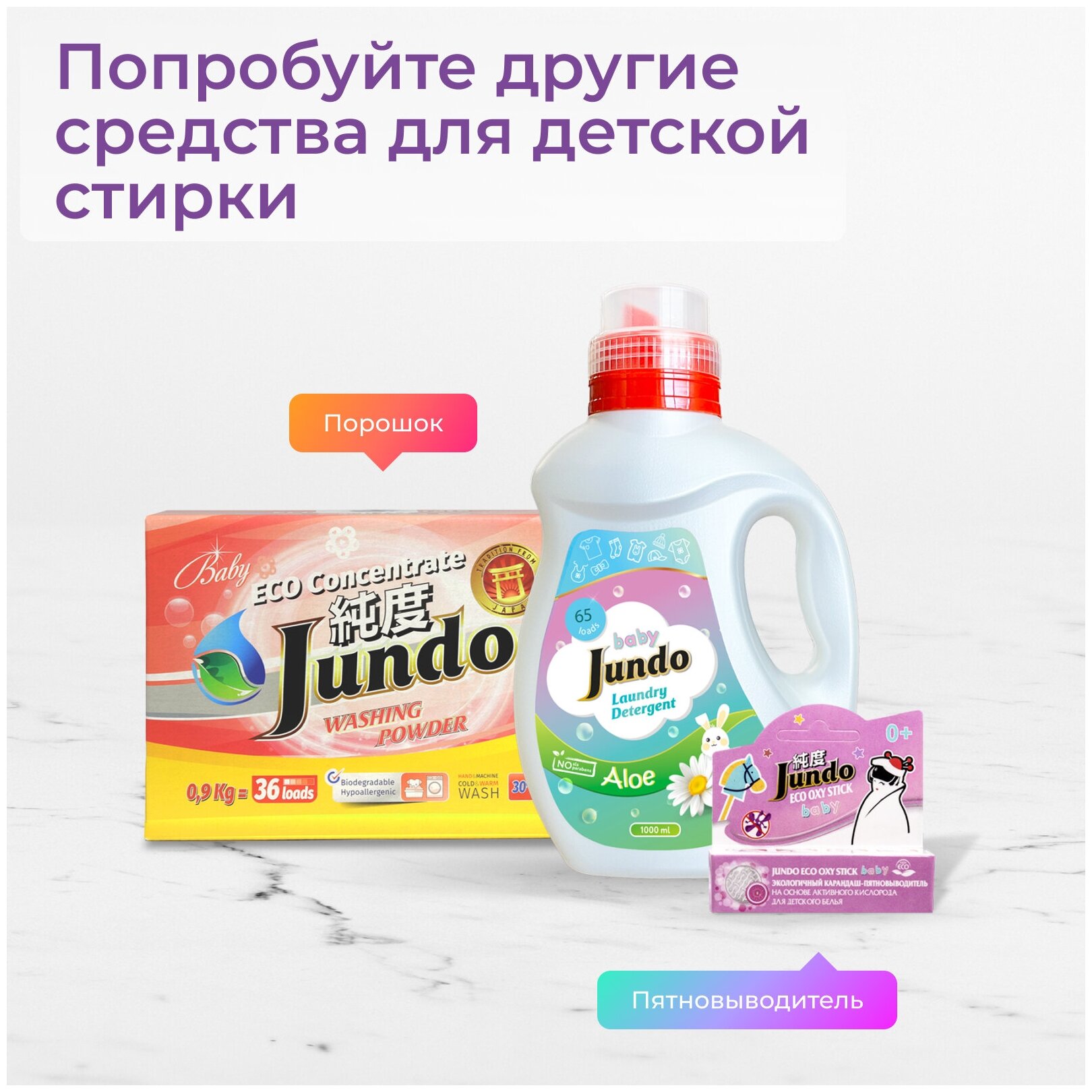 Универсальный гель для детского белья Jundo Baby - создан по новейшей японской технологии, благодаря которой увеличена концентрация средства в 2 раза. Эффективное и деликатное средство для стирки всех типов тканей детских вещей и детских принадлежностей. Подходит для хлопка, льна, шерсти, шелка, а также для синтетических тканей. Разработан с учетом загрязнений, которым подвергается детская одежда. Защищает одежду от потери цвета. Экстракт алоэ увлажняет, не раздражает кожу рук во время стирки. Гель полностью вымывается водой и не раздражает нежную кожу ребенка.