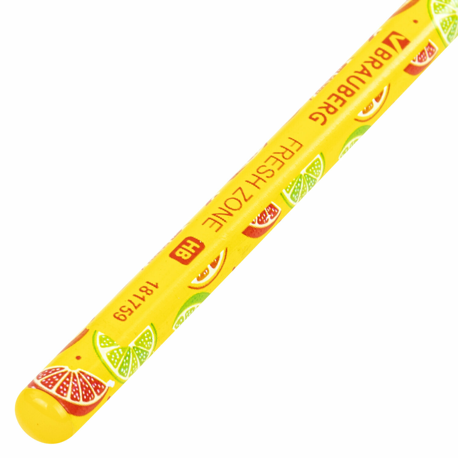 Карандаш чернографитный BRAUBERG "FRESH ZONE" - первый помощник для выполнения различных заметок. Позволяет сделать легкий набросок, быстрый стремительный рисунок или нарисовать полноценную картину. Используется повсеместно. Каждый карандаш имеет индивидуальный штрих-код. Легко затачивается, максимально устойчив к повреждениям. Изготовлен из дерева высокого качества. Имеет круглое сечение. Карандаш длиной 172 мм обладает средней степенью твердости HB. Корпус покрыт цветной печатью ассорти в 4 дизайнах.