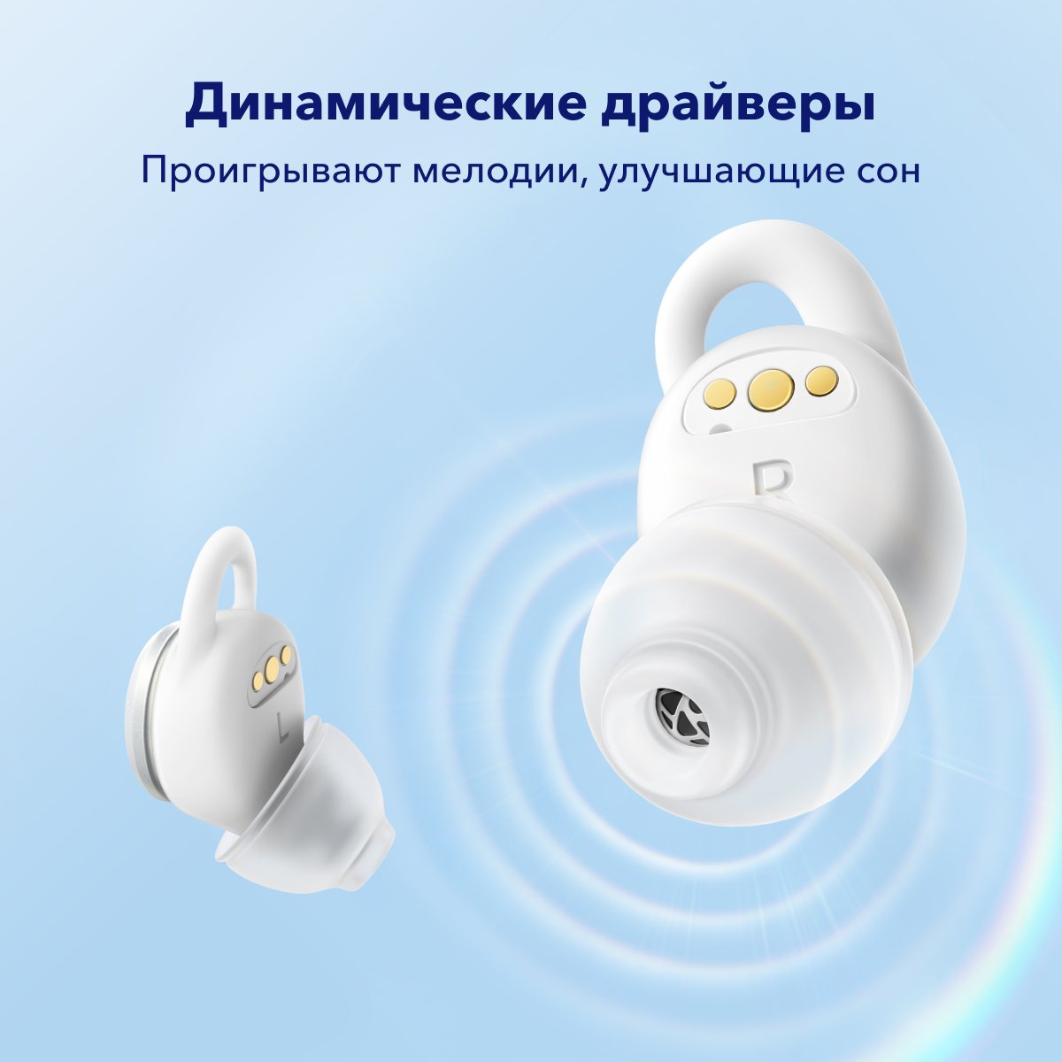 Тонкая и легкая конструкция: Sleep A10 плотно прилегают к ушам, не выступая и не доставляя дискомфорта, даже если активно двигаться или лежать на боку. Спокойный сон: 4-точечная система шумоподавления блокирует внешние шумы, а ушные дужки и вкладыши Twin Seal обеспечивают надежную посадку. Интеллектуальный переключатель приостанавливает воспроизведение, как только пользователь переходит в фазу сна, и переключается в спящий режим.*Примечание: Шумоподавление не является активным (ANC). Оно блокирует внешние шумы за счет добавления фоновых звуков и правильно подобранных амбушюр. Устойчивое соединение: Sleep A10 подключаются к внешним устройствам по Bluetooth версии 5.2, обеспечивая надежную связь без искажения звука и помех. Максимальное расслабление: В официальном приложении soundcore можно найти музыку для сна (белый шум), чтобы расслабиться и настроиться на качественный глубокий сон. Мониторинг сна: Наушники анализируют продолжительность и качество сна, чтобы дать полное представление о том, как долго длился сон и сколько времени пользователь пытался уснуть. Приятное пробуждение: В приложении soundcore можно установить будильник, чтобы проснуться в строго установленное время. Будильник сработает независимо от того, воспроизводят наушники музыку или нет.