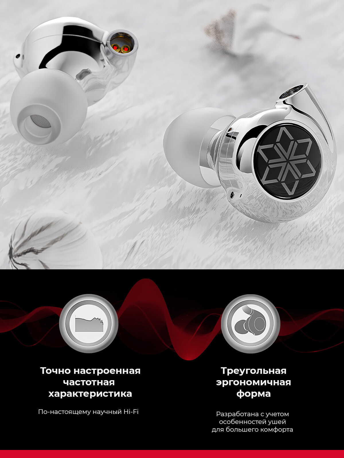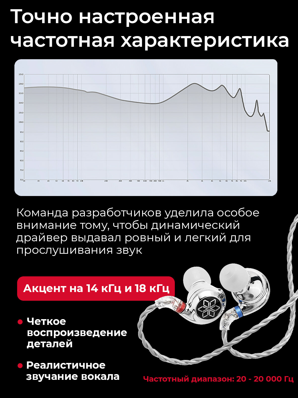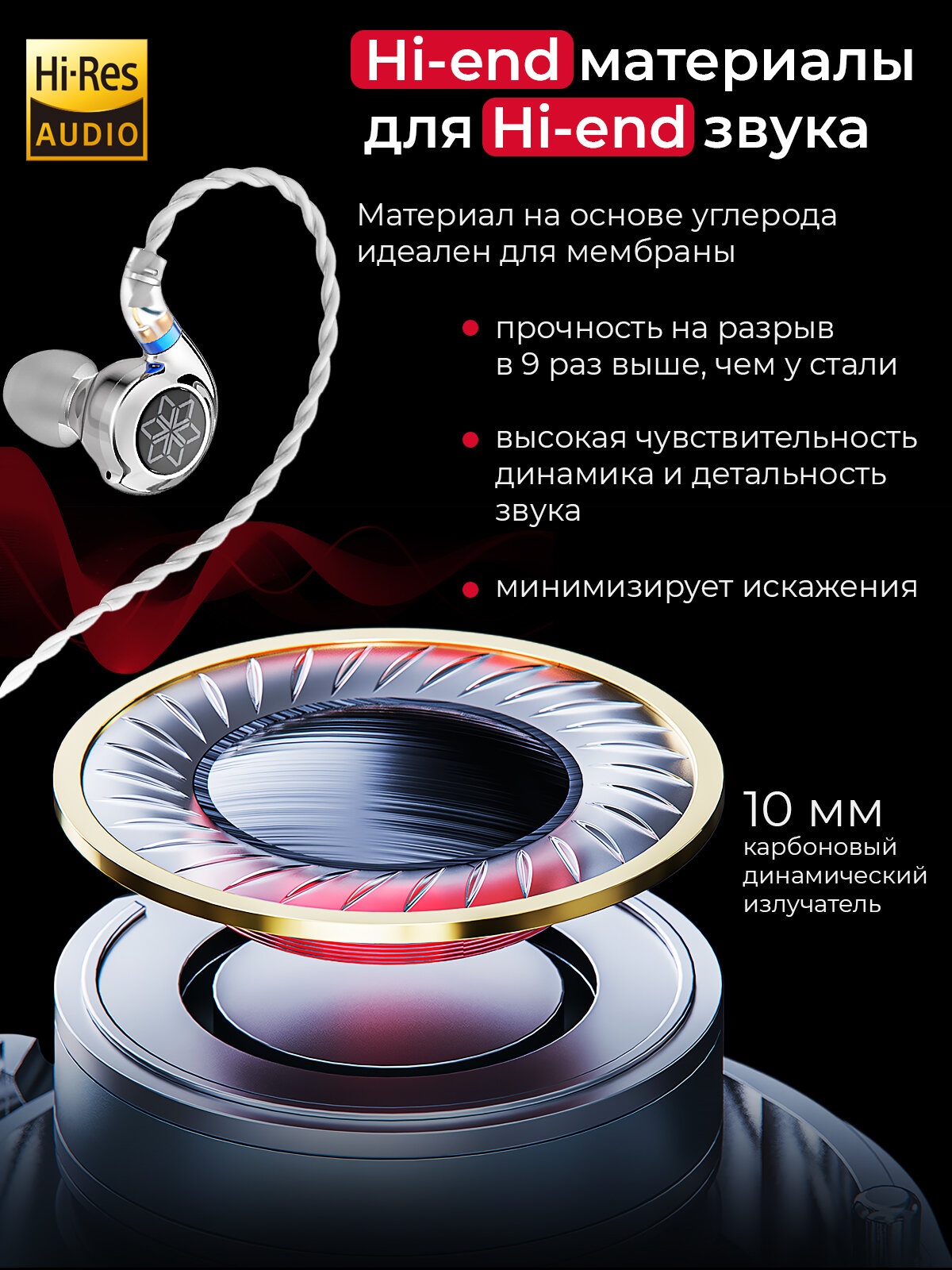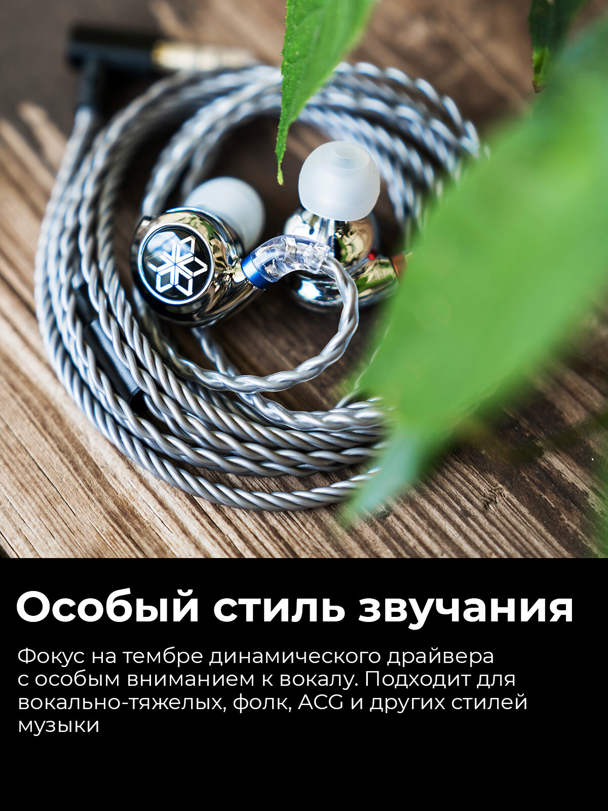FiiO FD11 — динамические наушники с 10-мм карбоновым драйвером. Материалы уровня High-End и использование инновационных технологий ставят эти наушники на вершину своего класса по качеству звучания и визуальной эстетике. Команда разработки FiiO создала FD11 в рамках новой серии Bionic Conch (Бионическая раковина), нацеленной на звучание и эстетику, превосходящие свою ценовую категорию. Использование премиальных материалов и технологий позволило поднять звук на новый уровень и подарить слушателю уникальные ощущения от любимой музыки. Для излучателей FD11 разработчики выбрали те же материалы, что и у топовых моделей FiiO FH15 и FF5 — 10-мм диафрагма на основе углерода легче, чем алюминиевые и бериллиевые аналоги, но при этом в 9 раз более прочная, чем сталь. В FD11 реализована фирменная ассиметричная магнитная система второго поколения с внешней и внутренней частями схемы. Двойная магнитная система спроектирована с помощью моделирования методом конечных элементов и по эффективности и плотности магнитного потока превосходит стандартные (внешние или внутренние) магнитные системы драйверов. Использование магнитов из неодима N52 позволило достигнуть высокой чувствительности в 111 дБ/мВт и снизить до минимума уровень искажений. Позади динамиков FD11 инженеры расположили специальную двойную резонаторную камеру с системой демпфирования, распределяющей воздушный поток между внутренней и внешней камерами. Это позволяет, диафрагме двигаться более свободно и без риска повреждения. Также снижаются искажения от отраженных волн, в результате высокие частоты звучат более детально, а низкие — получают более точный, плотный и выраженный характер. Вдохновением для формы FiiO FD11 послужили морские раковины. Корпус изготовлен из цинкового сплава с помощью технологии литья под давлением, а затем отполирован и гальванизирован для придания финального блеска. В результате чего FD11 получили высококлассный внешний вид и прочный, износоустойчивый корпус, готовый к ежедневному использованию. На звучании всё это тоже отразилось в лучшую сторону — технология производства позволяет получить немного неровную внутреннюю поверхность — достаточную для того, чтобы минимизировать возникновение стоячих волн и сделать звучание еще чище. FD11 — отличный пример того, что можно получить, соединив эстетику и технологичность.