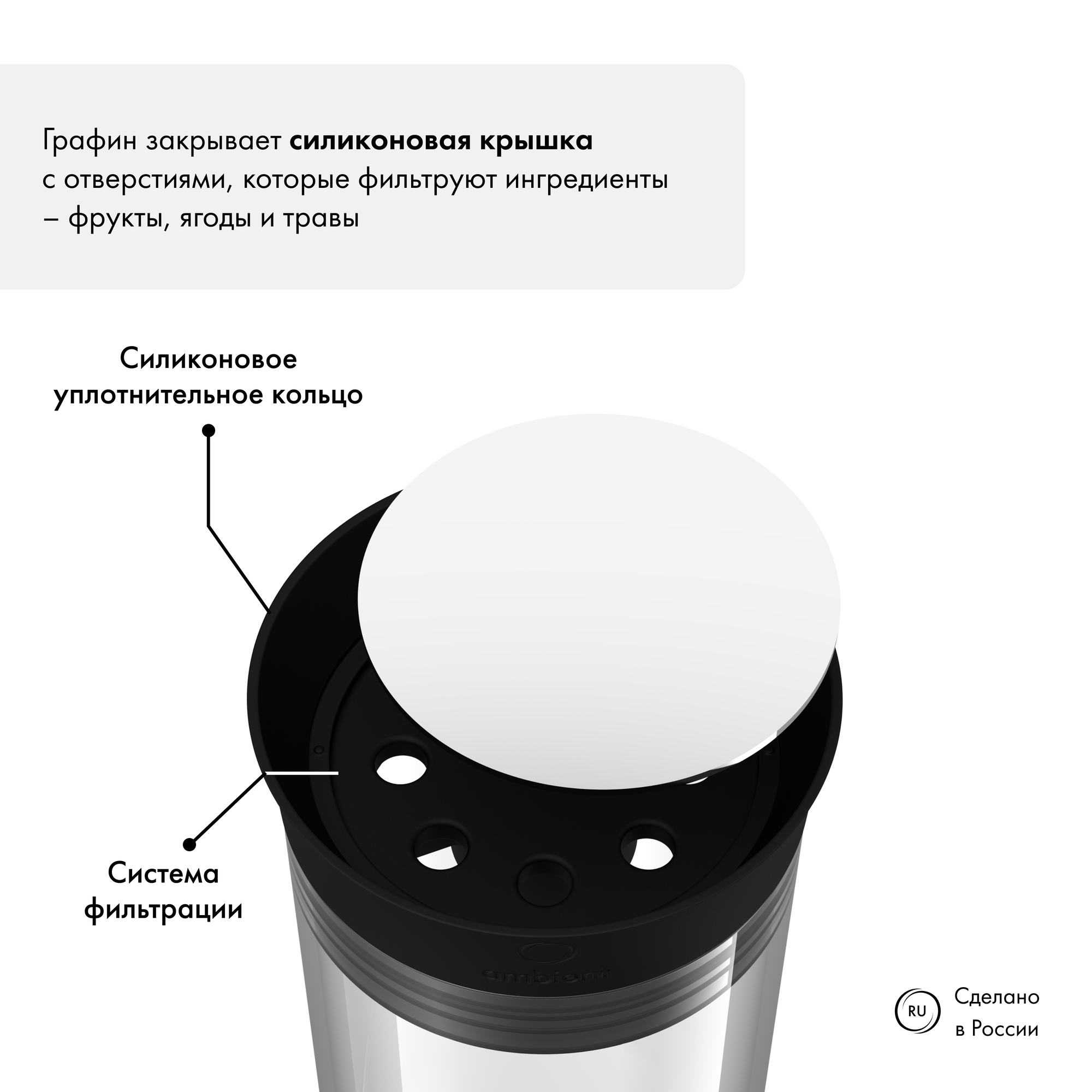 Стильный графин Nova–идеален для подачи холодных и горячих напитков, он одинаково эффективно выдерживает минимальные и максимальные температуры.Графин закрывает силиконовая крышка с отверстиями, которые фильтруют ингредиенты – фрукты, ягоды и травы. Металлический клапан и изогнутые края разработаны так, чтобы напитки можно было наливать с любой стороны.Колбу рекомендовано мыть вручную, а остальные составляющие – крышу и клапан можно мыть в посудомоечной машине.Эргономичный и вместительный графин Nova с любимым напитком – отличное дополнение к обеденному столу!
