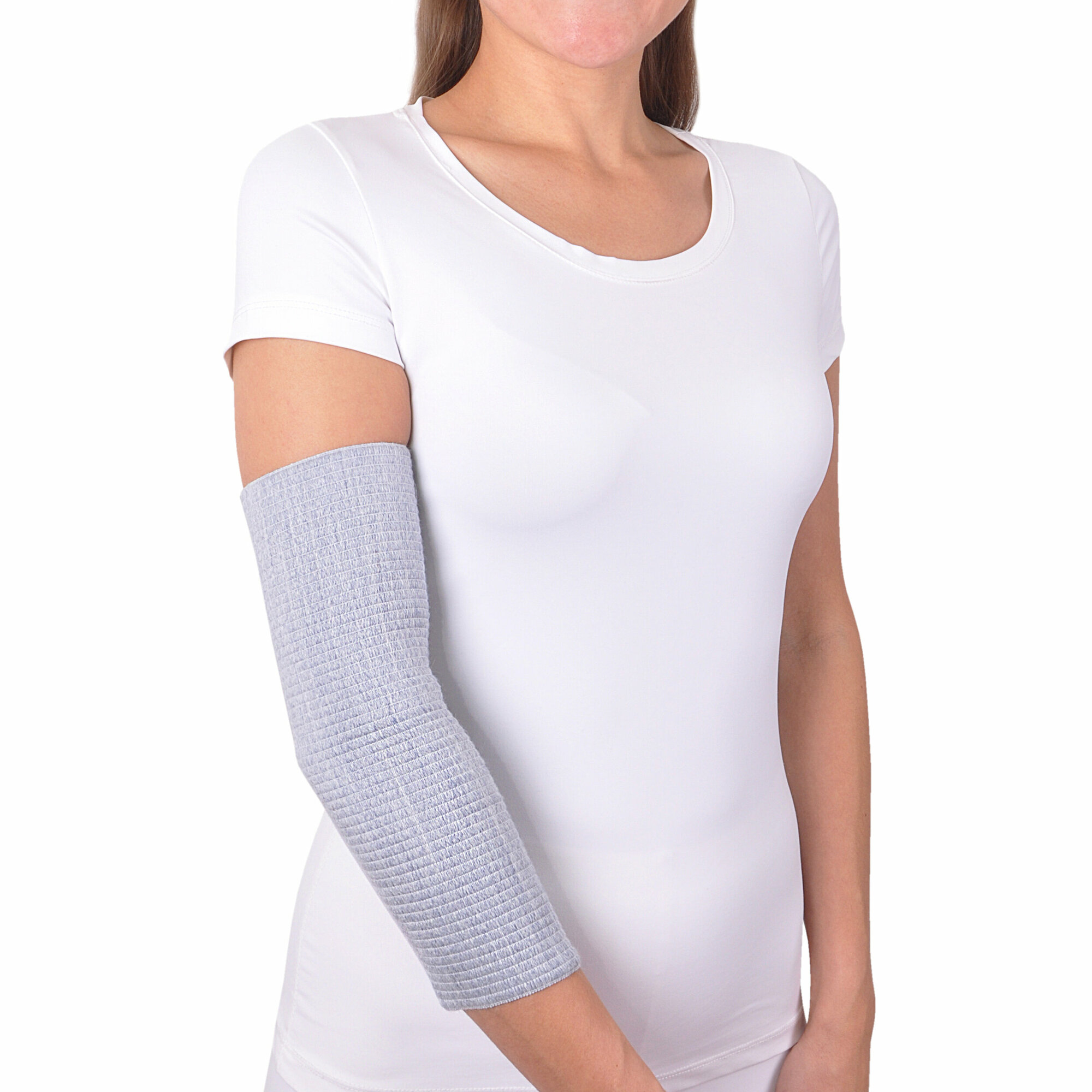 Бандаж для локтевого сустава - "Крейт". Согревающий.В разм. таблице - обхват локтя.Как правильно сделать замер: обхват локтя измеряется по выступающим точкам локтя в чуть согнутом положении. Более детально в схеме на фото.Бандаж на локоть согревающий предназначен для фиксации локтевого сустава и оказывает тепловое и микромассажное воздействие. Можно носить любой стороной к телу. Высота 28см. Согревающий бандаж на локтевой сустав выполнен из эластичного материала с шерстью мериноса и хлопка. Обеспечивает легкую степень фиксации. Эластичный налокотник для суставов подходит мужчинам и женщинам. Универсальный: для правой и левой руки.