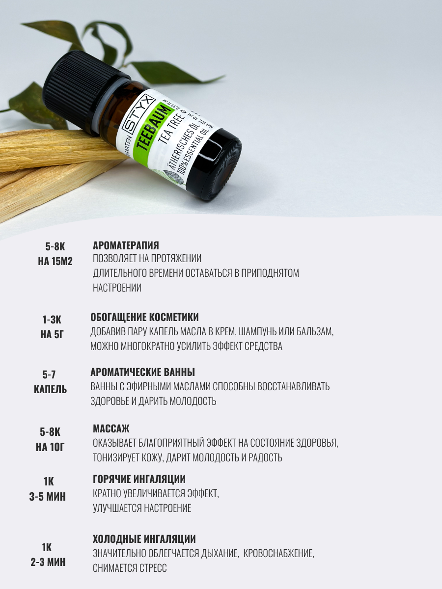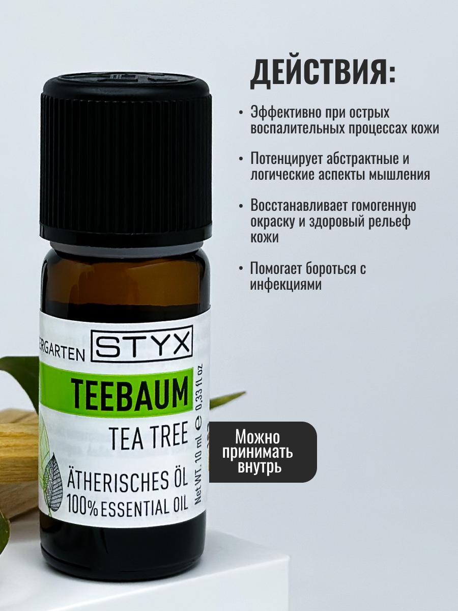 Эфирное масло Styx Teebaum 100% Pureessential Oil — это натуральное средство для ухода за кожей лица и тела.