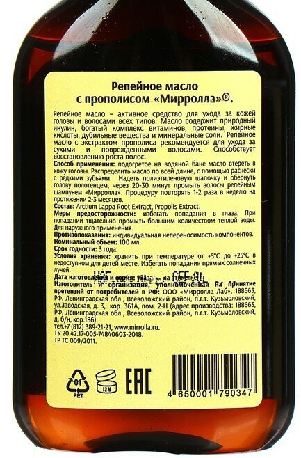 Mirolla Масло репейное Прополис 100 мл Мирролла ООО
