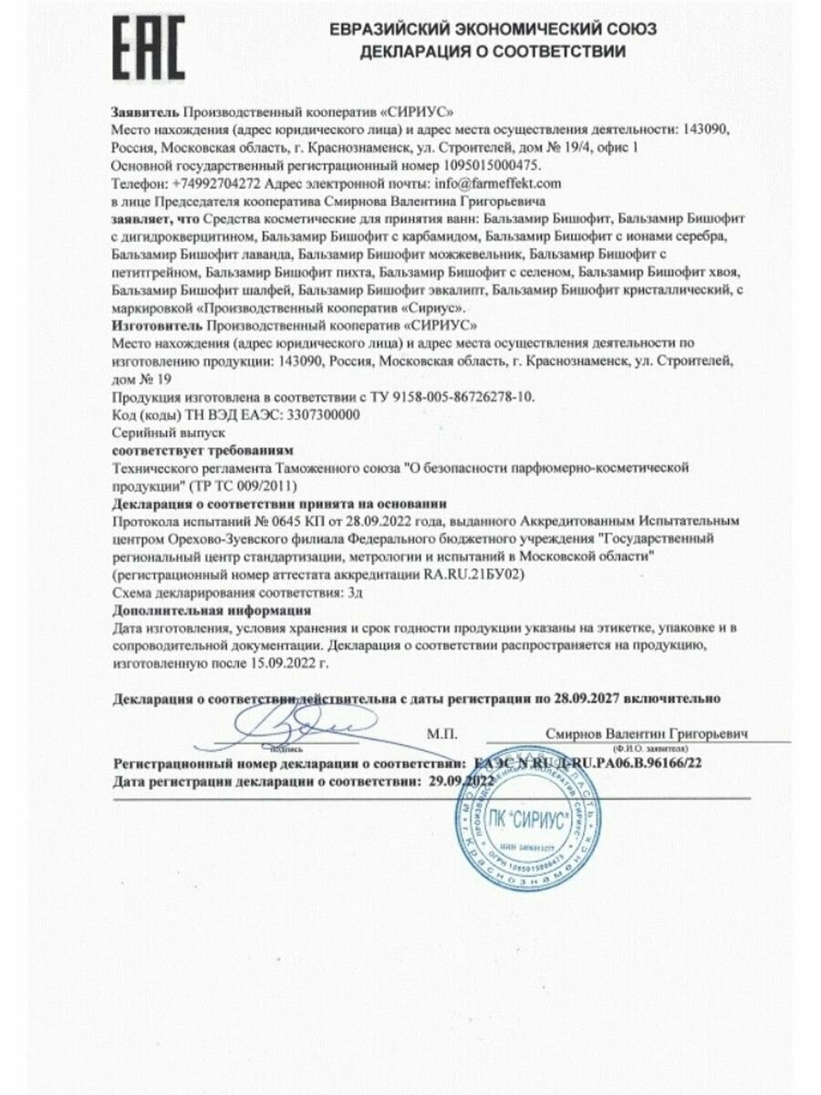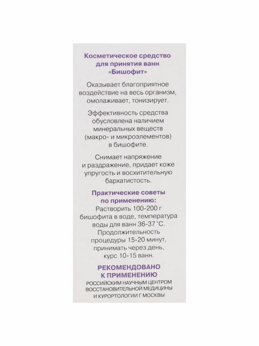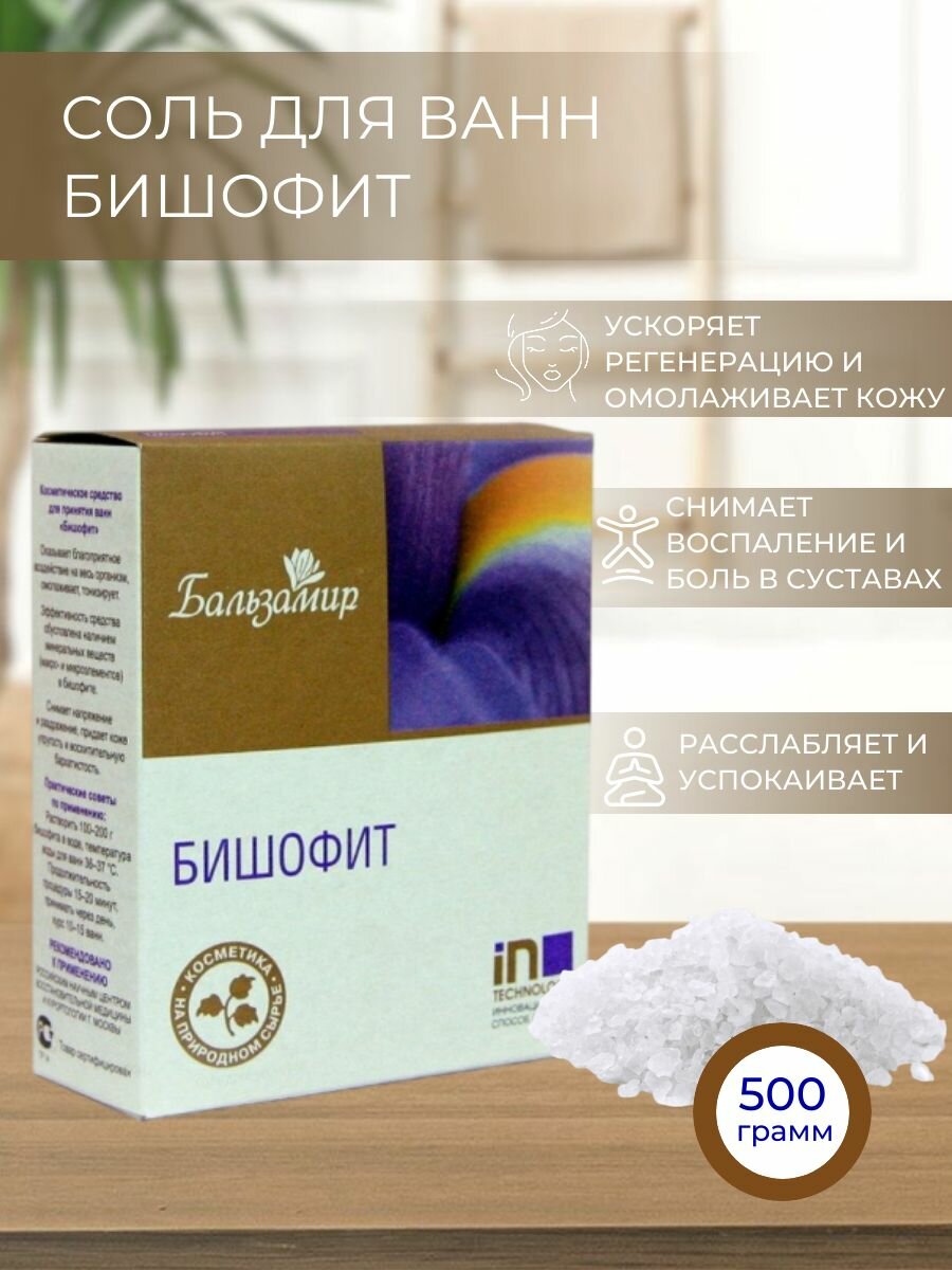 | Полное наименование | Соль Бальзамир для ванны Бишовит 500 г |