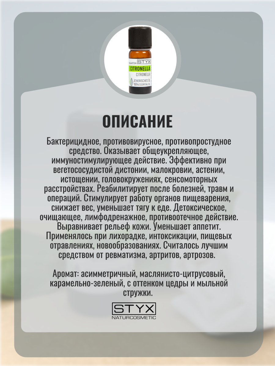 ![STYX Naturcosmetic [Стикс Натурокосметик] Styx Масло эфирное цитронелла 10 мл STYX Naturcosmetic [Стикс Натурокосметик]](https://cdn.xn--80agbcqdjc3d.xn--p1ai/images/prodacts/290/0/0.jpg)