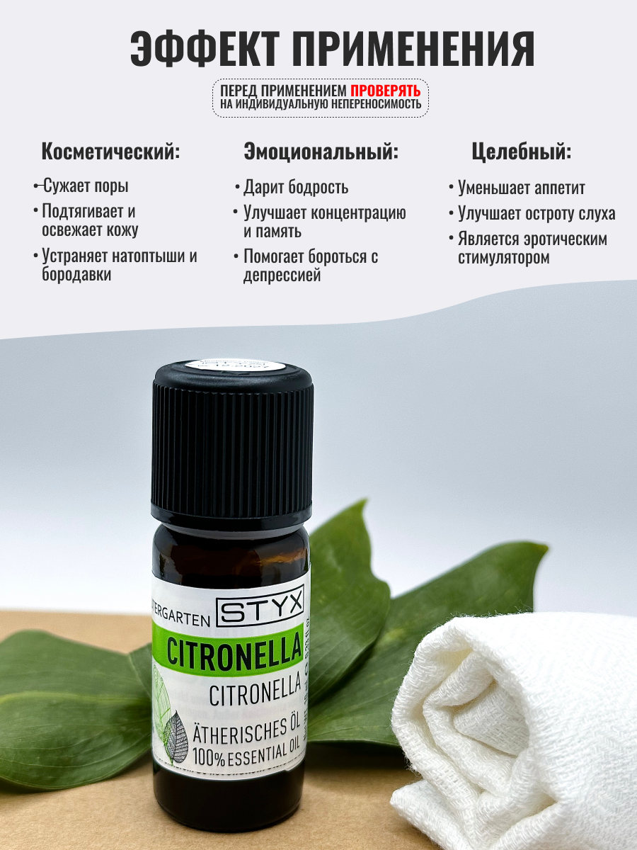 | Полное наименование | Стикс Эфирное масло цитронелла 10мл |